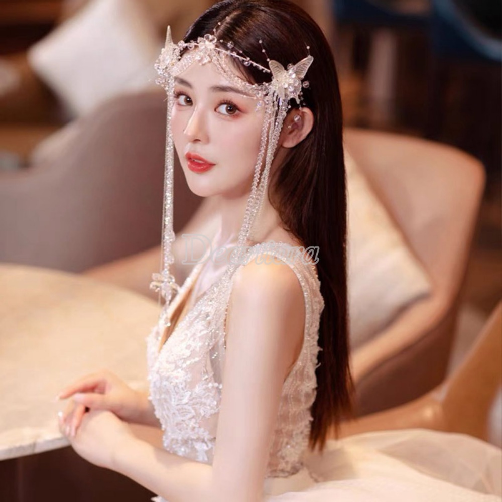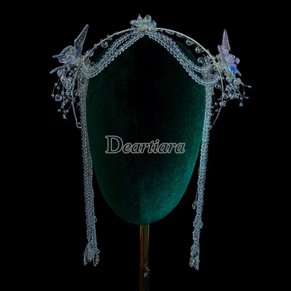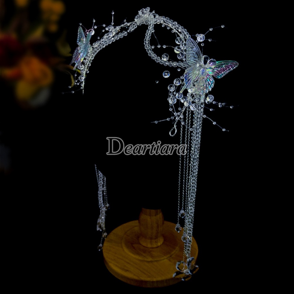 ที่คาดผม ประดับลูกปัดคริสตัล และพู่ยาว แฮนด์เมด สําหรับเจ้าสาว