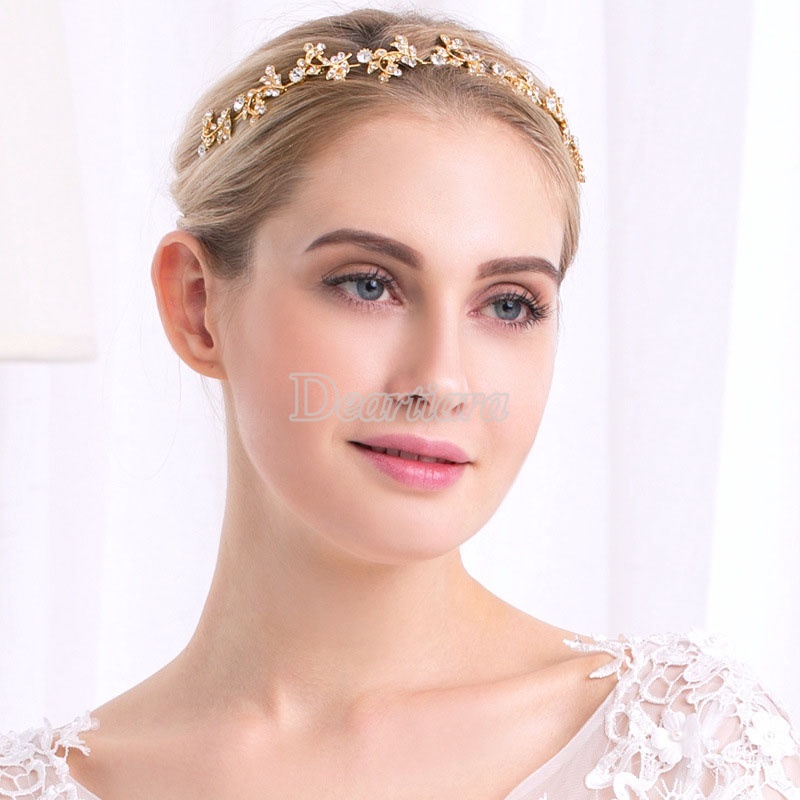ที่คาดผม ประดับคริสตัล และพลอยเทียม รูปใบไม้ สีทอง สําหรับผู้หญิง