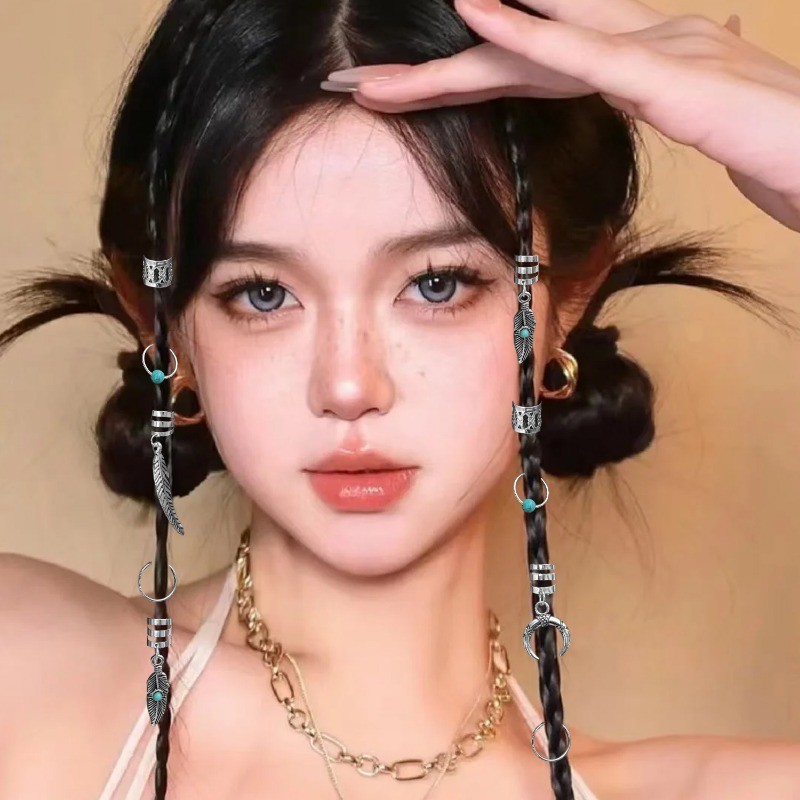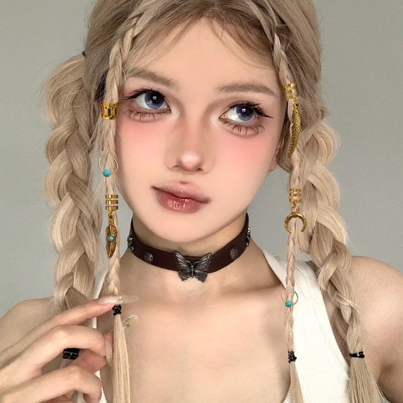 ชิ้น/เซ็ตฮิปฮอปแฟชั่นโลหะผสมถักเปียหัวเข็มขัดวงกลมย้อนยุคอย่างโบฮีเมียนดวงจันทร์ใบผมห่วง