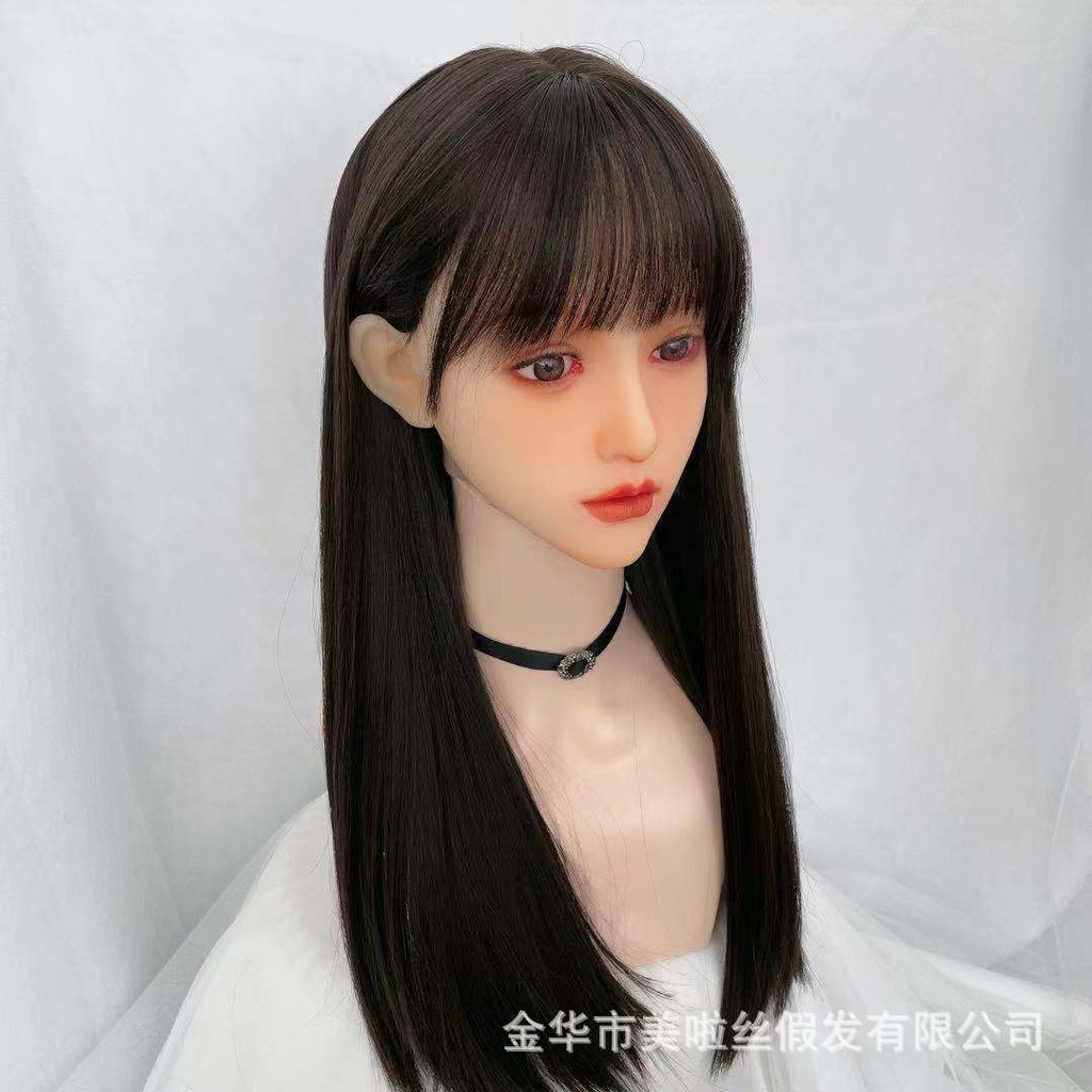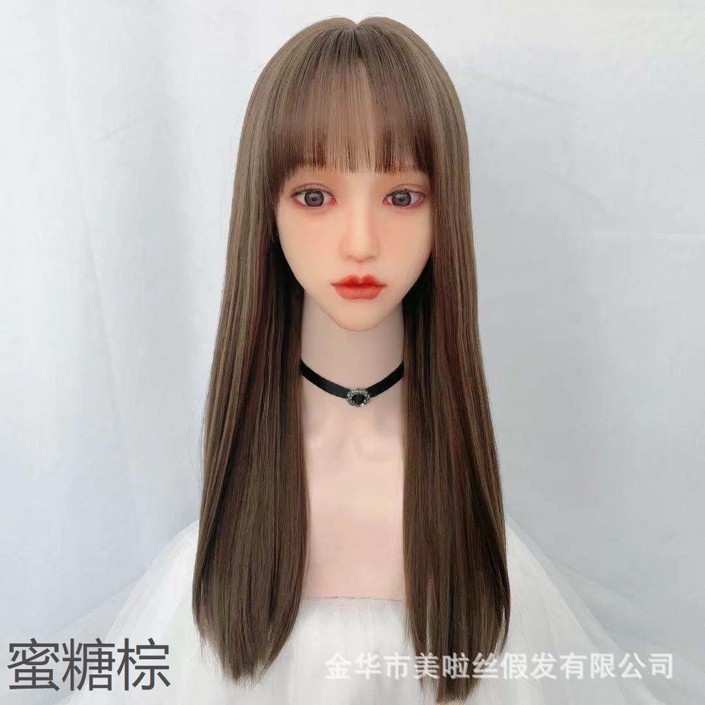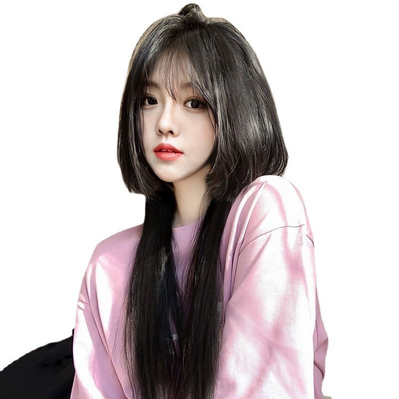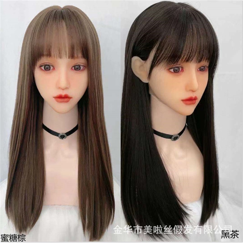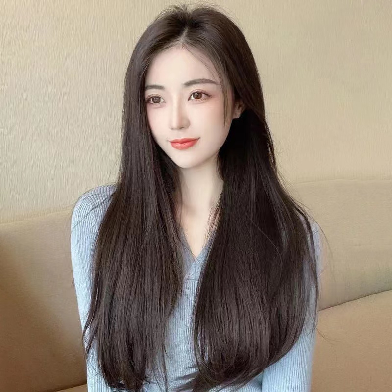 เวอร์ชั่นเกาหลีที่ไม่ซ้ํากันธรรมชาติอุณหภูมิสูงวิกผมผ้าไหมหญิงระบายอากาศธรรมชาติเหมือนจริงไม่มีรอยต่อผมยาวตรงวิกผมชุดพร้อมสต็อกทั้ง