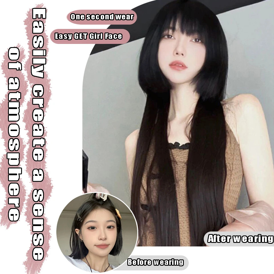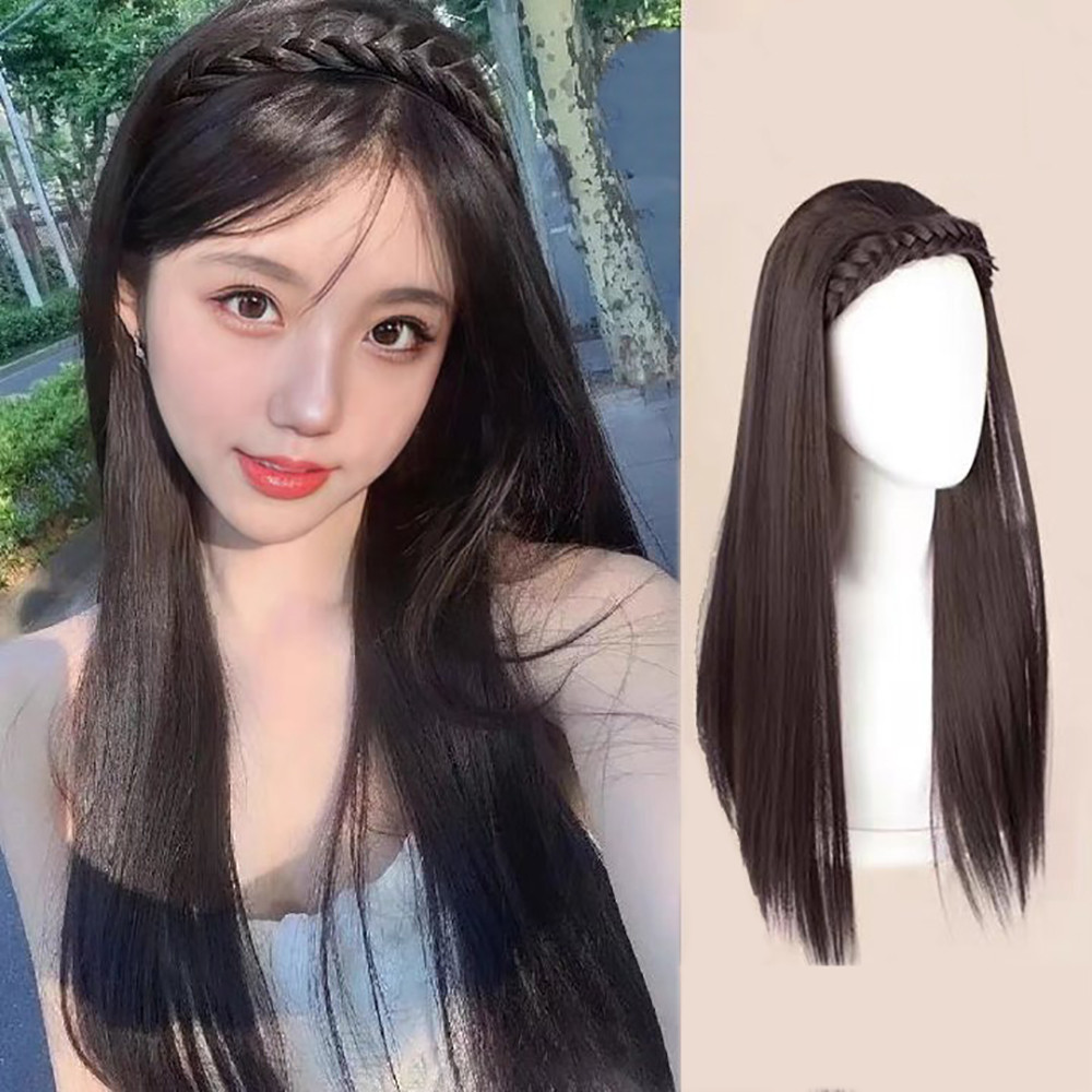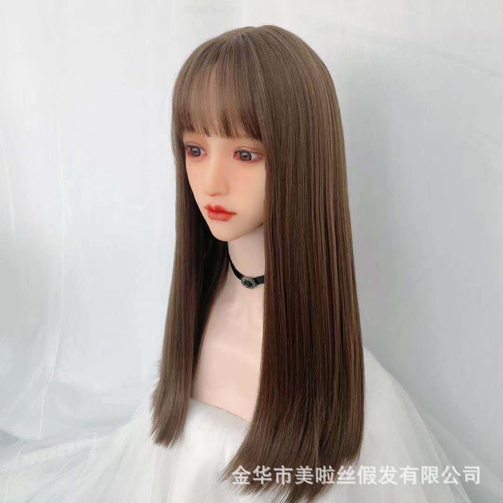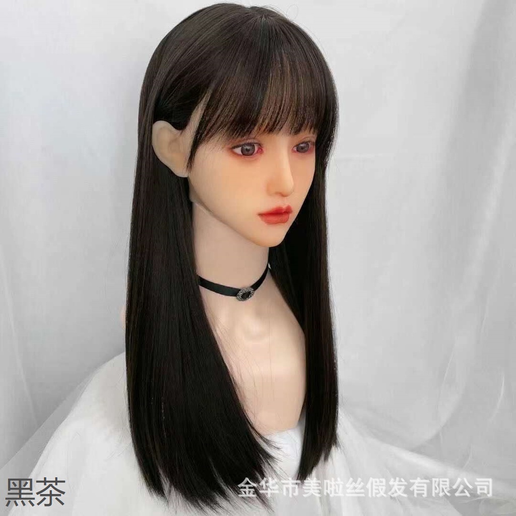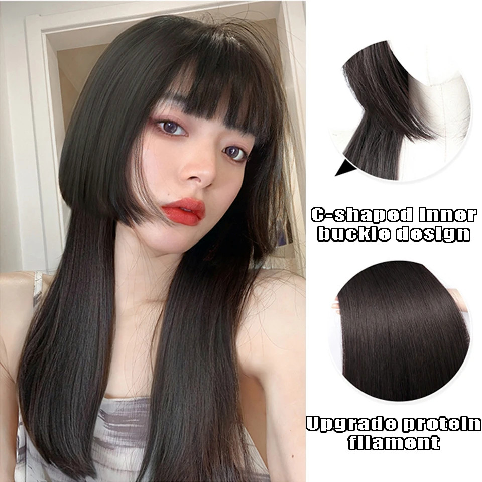 เวอร์ชั่นเกาหลีที่ไม่ซ้ํากันธรรมชาติอุณหภูมิสูงวิกผมผ้าไหมหญิงระบายอากาศธรรมชาติเหมือนจริงไม่มีรอยต่อผมยาวตรงวิกผมชุดพร้อมสต็อกทั้ง