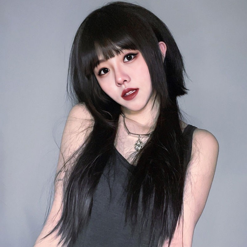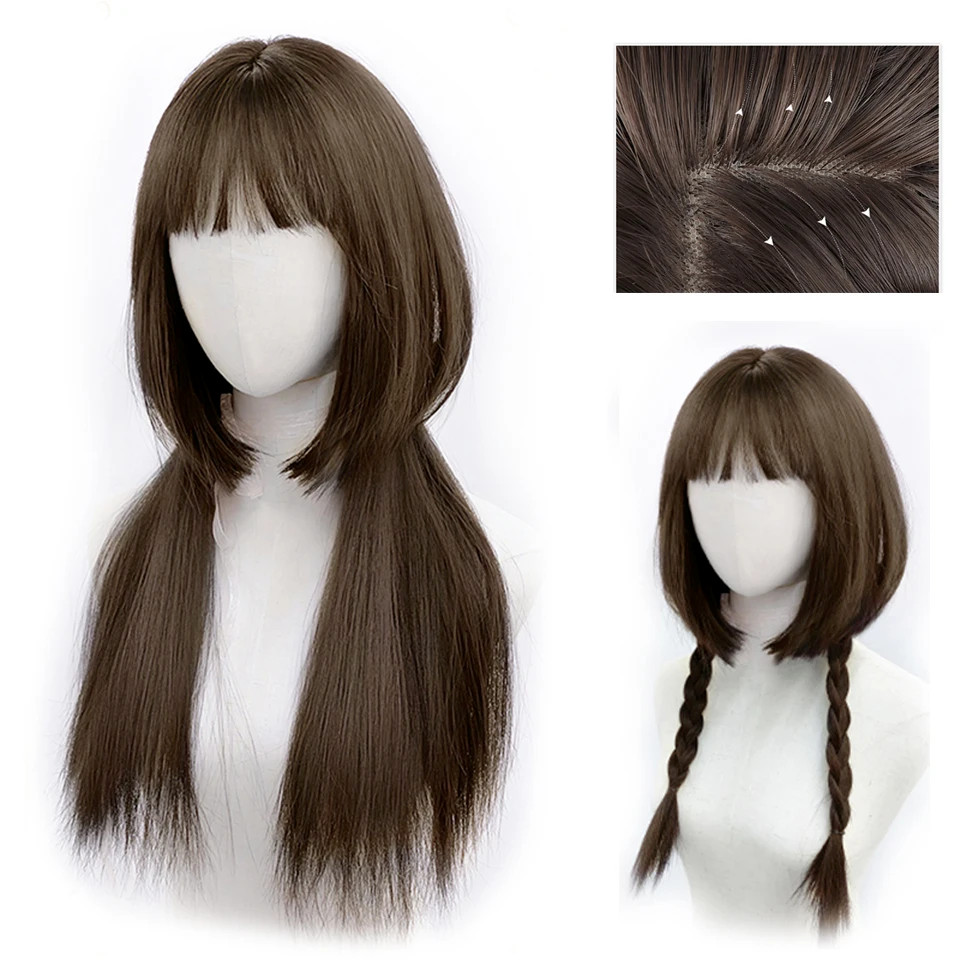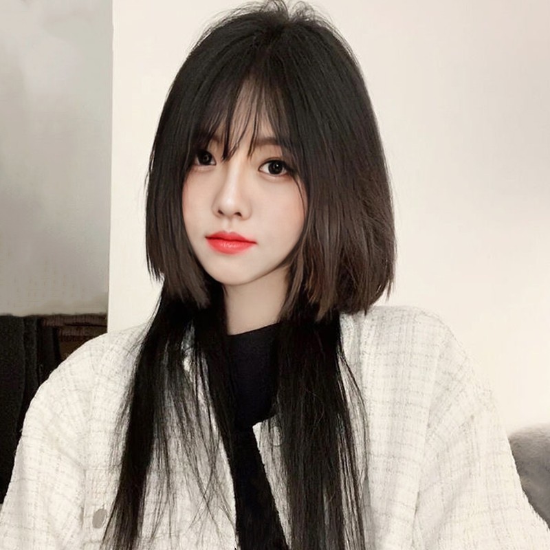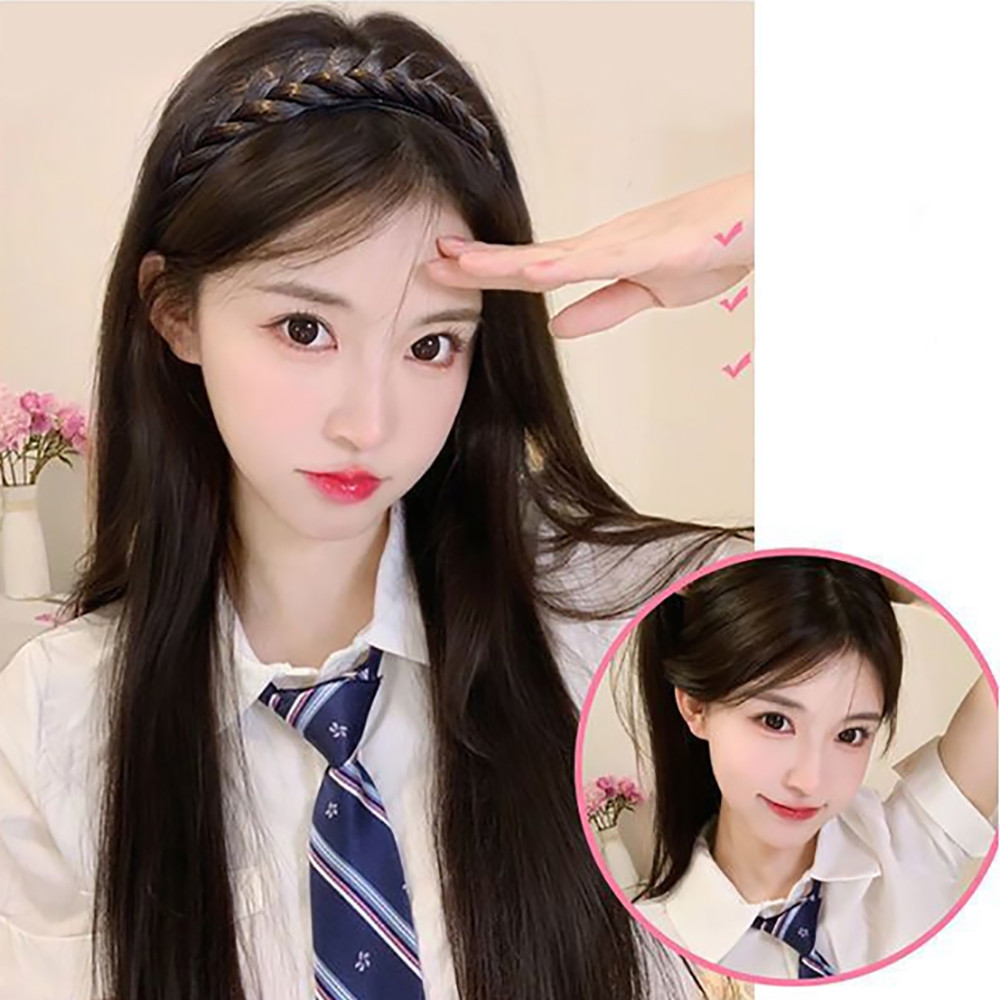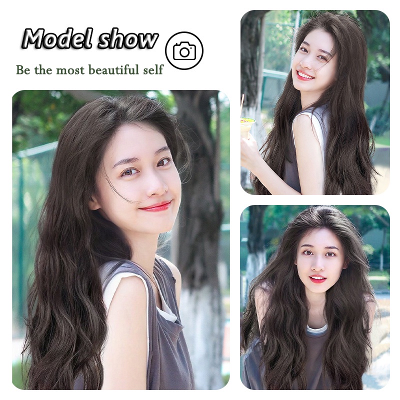 เวอร์ชั่นเกาหลีที่ไม่ซ้ํากันธรรมชาติอุณหภูมิสูงวิกผมผ้าไหมหญิงระบายอากาศธรรมชาติเหมือนจริงไม่มีรอยต่อผมยาวตรงวิกผมชุดพร้อมสต็อกทั้ง