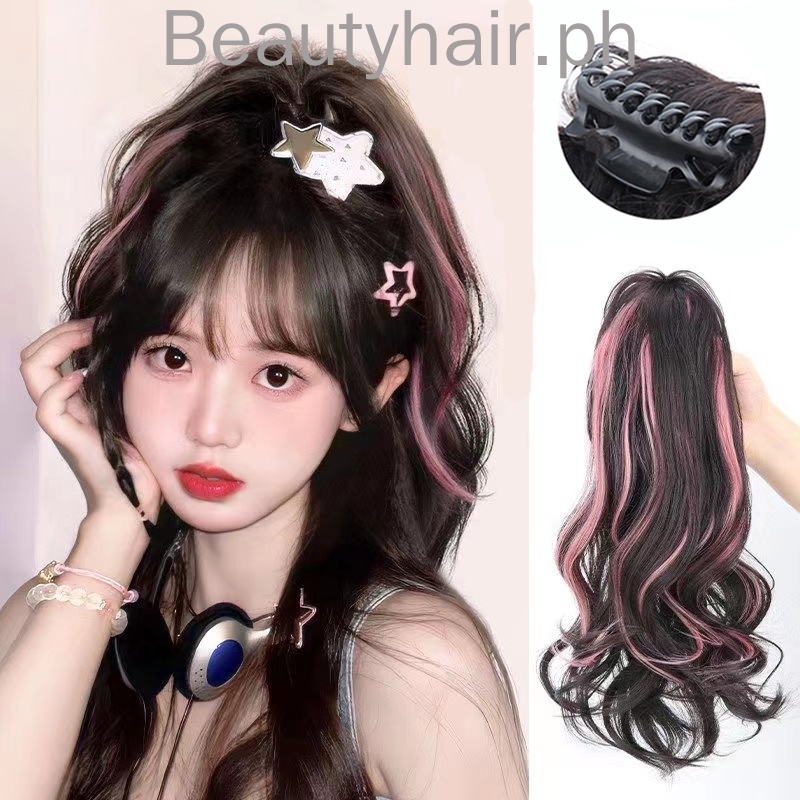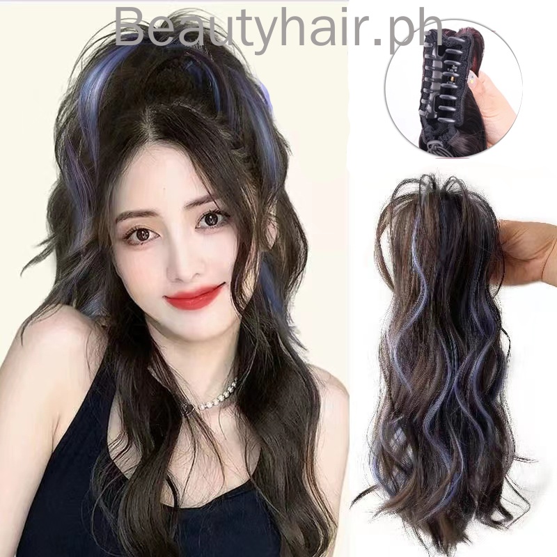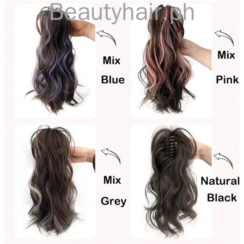 แฟชั่นใหม่ 35 ซม. คลิปกรงเล็บหยิก หางม้าสูง สีดํา คละสี สีฟ้า / สีชมพู / สีเทา ผมหางม้าสูง สังเคราะห์ ต่อผม แบบผูกครึ่ง สําหรับผู้หญิง