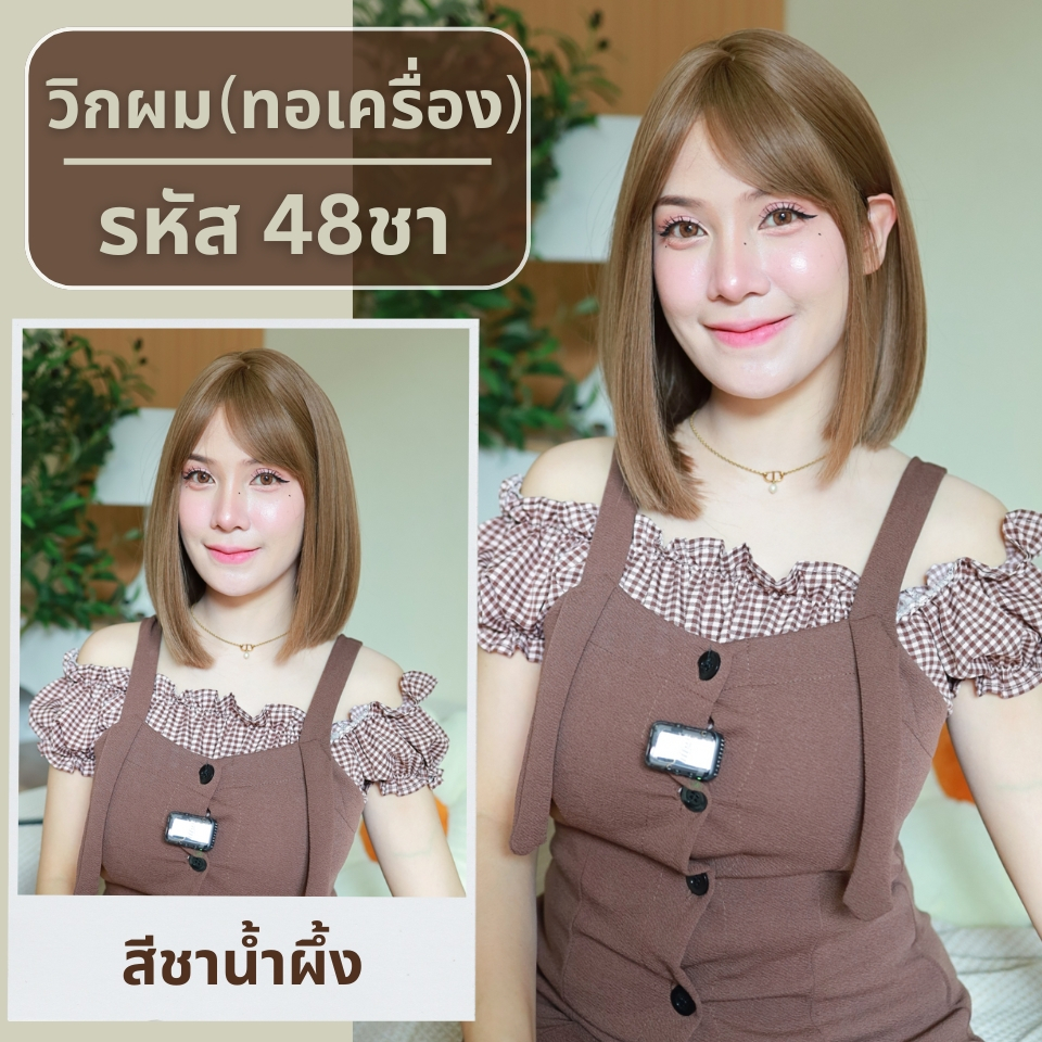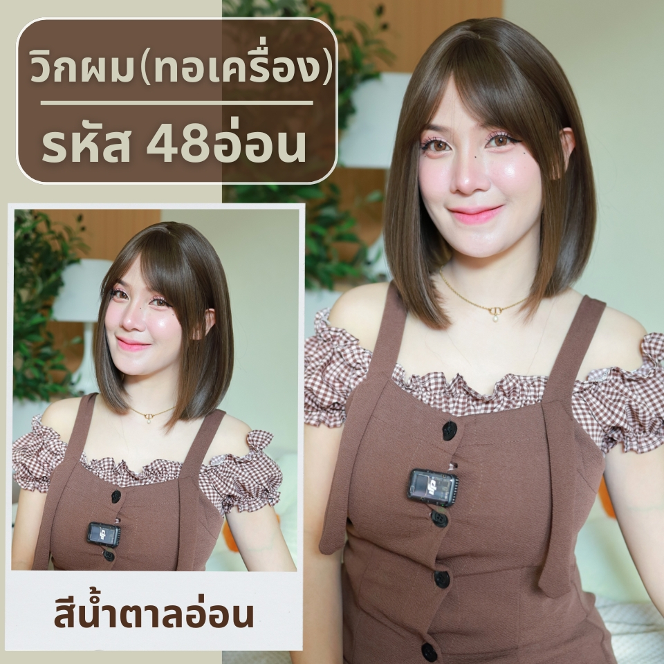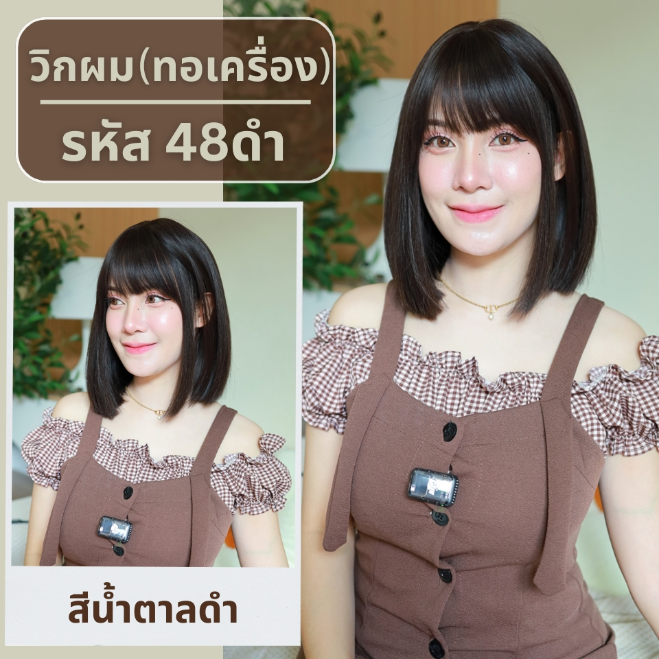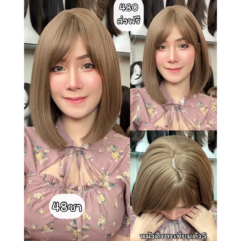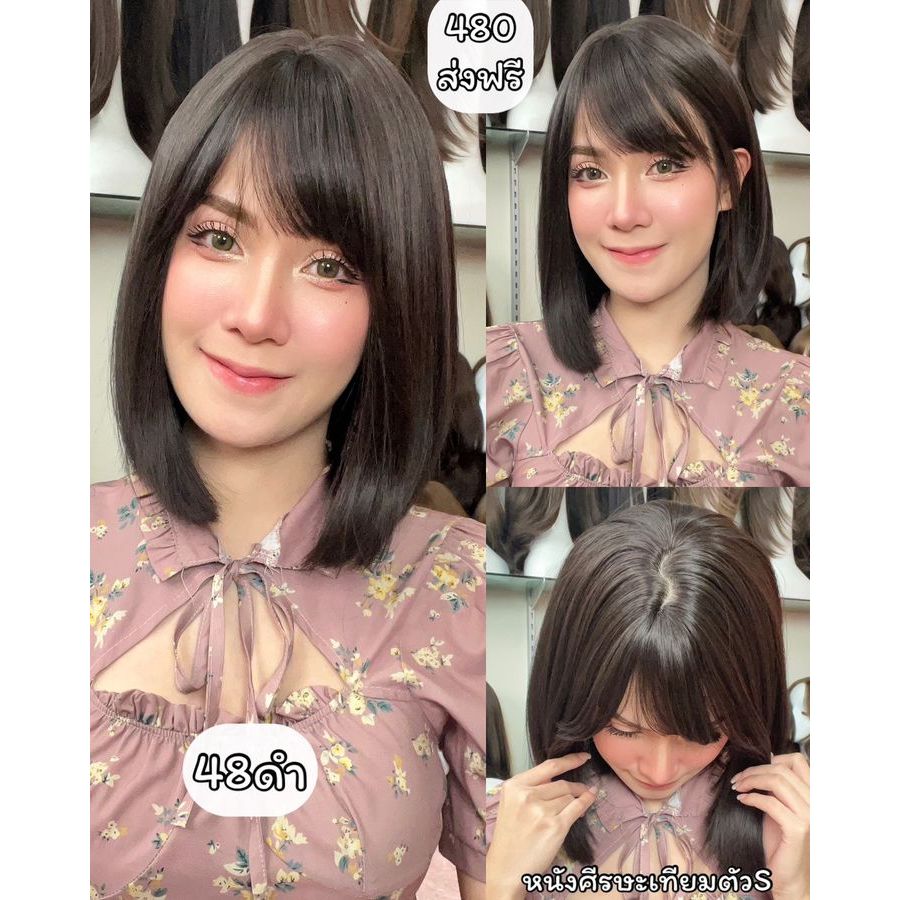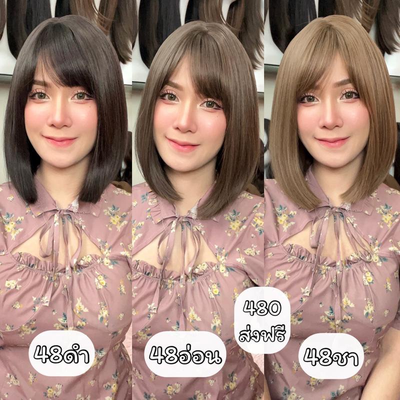 เบอร์ 48 : Pinny วิกผมตรงสั้นยาวปะบ่าปลายสไลค์เล็กน้อย- หนังศีรษะเทียมแบบใหม่รูปตัวS (แถมเน็ต+ขาตั้ง+ของแถม)