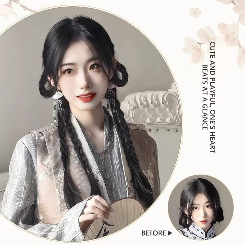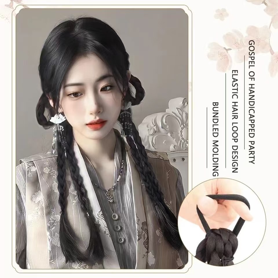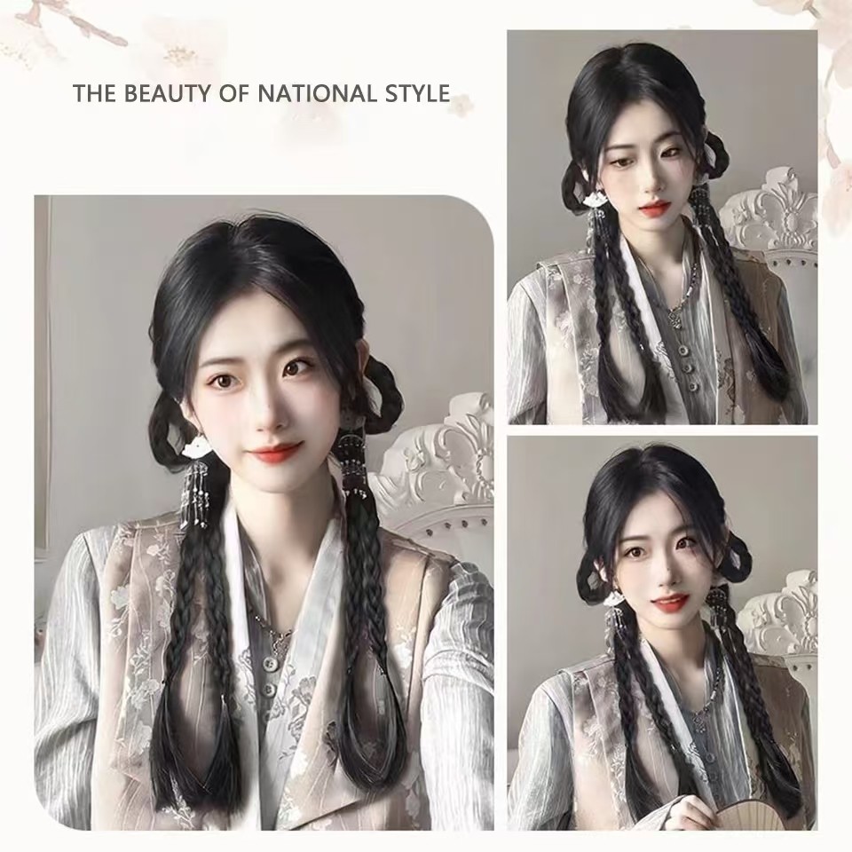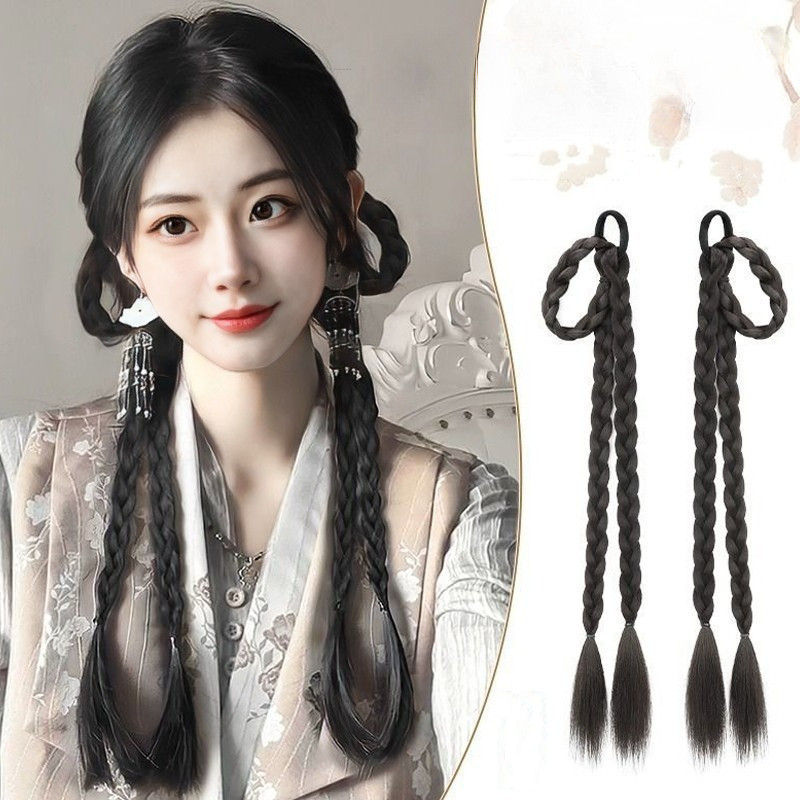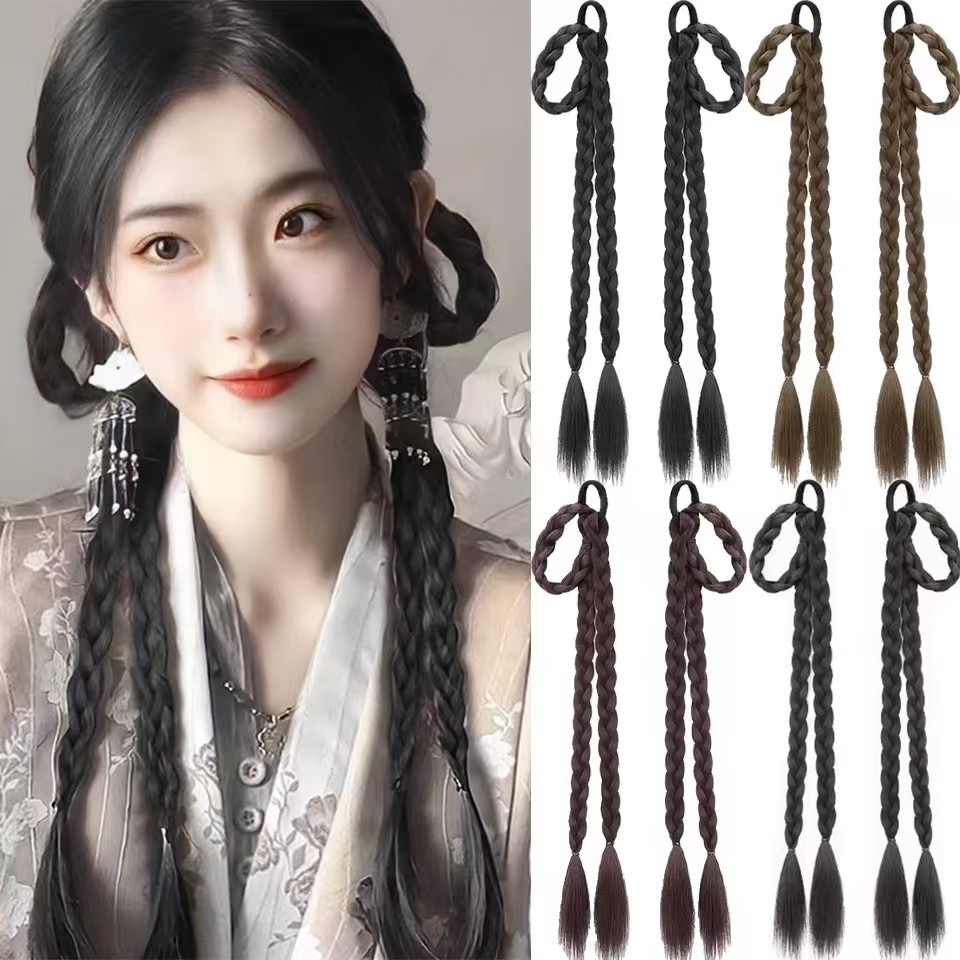 เปียวิกผมหางม้า ต่อผมและอุปกรณ์เสริม ผมจําลองธรรมชาติ แป้งทอด บิด ถักเปียหางม้าคู่ มวยถักเปีย