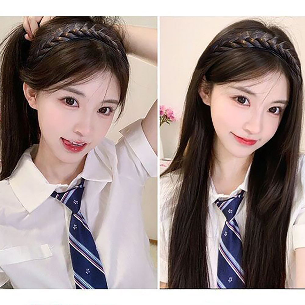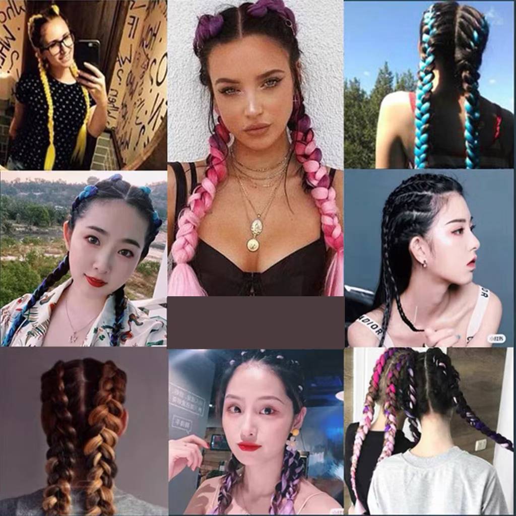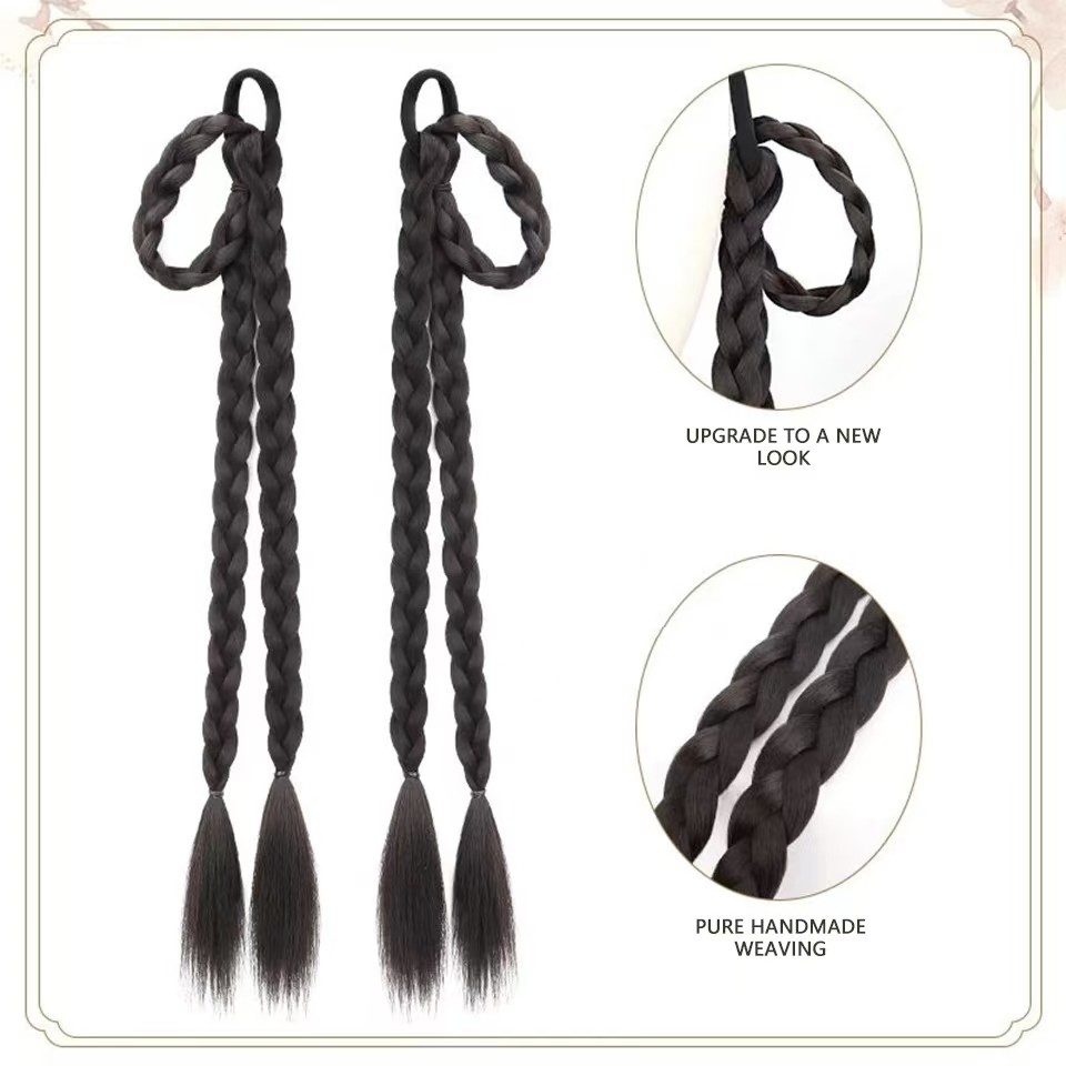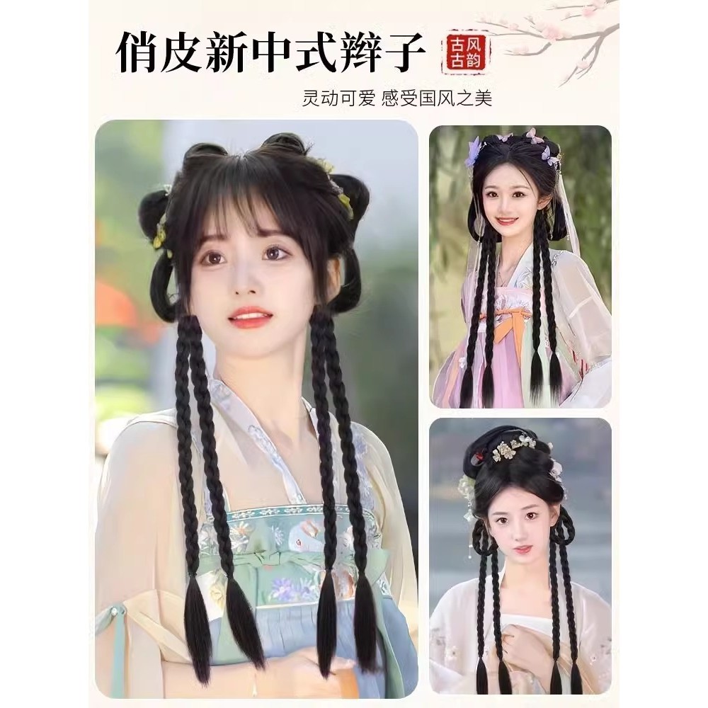 เปียวิกผมหางม้า ต่อผมและอุปกรณ์เสริม ผมจําลองธรรมชาติ แป้งทอด บิด ถักเปียหางม้าคู่ มวยถักเปีย