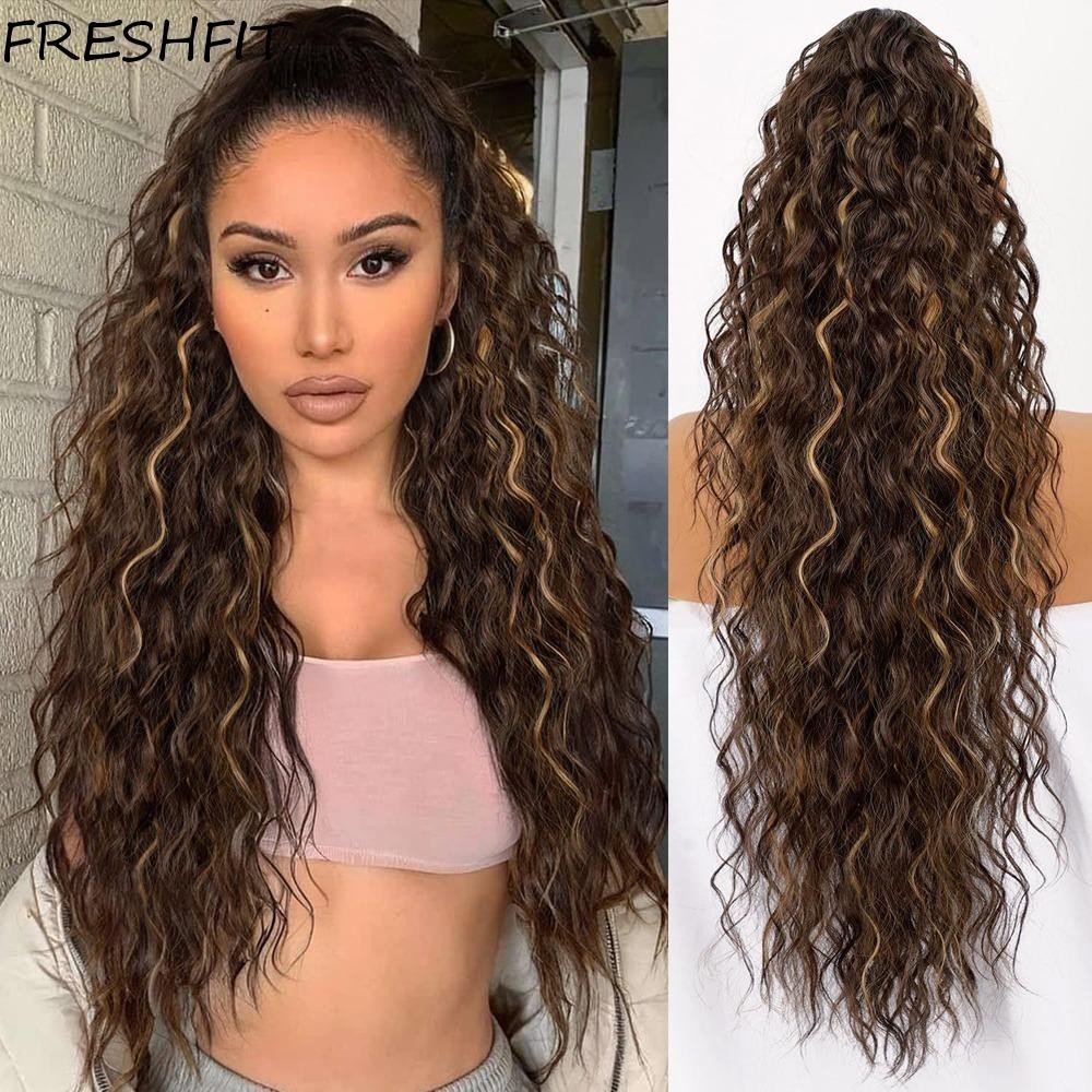 เฟรชฟิต คลิปกรงเล็บวิกผมหางม้า,ดัดข้าวโพด ออมเบร ยาวหยักหยิกผมหางม้า,เส้นใยทนความร้อนขยายผมหางม้าปลอมธรรมชาติโพนี่หางแฮร์พีชทุกวัน