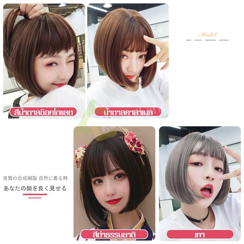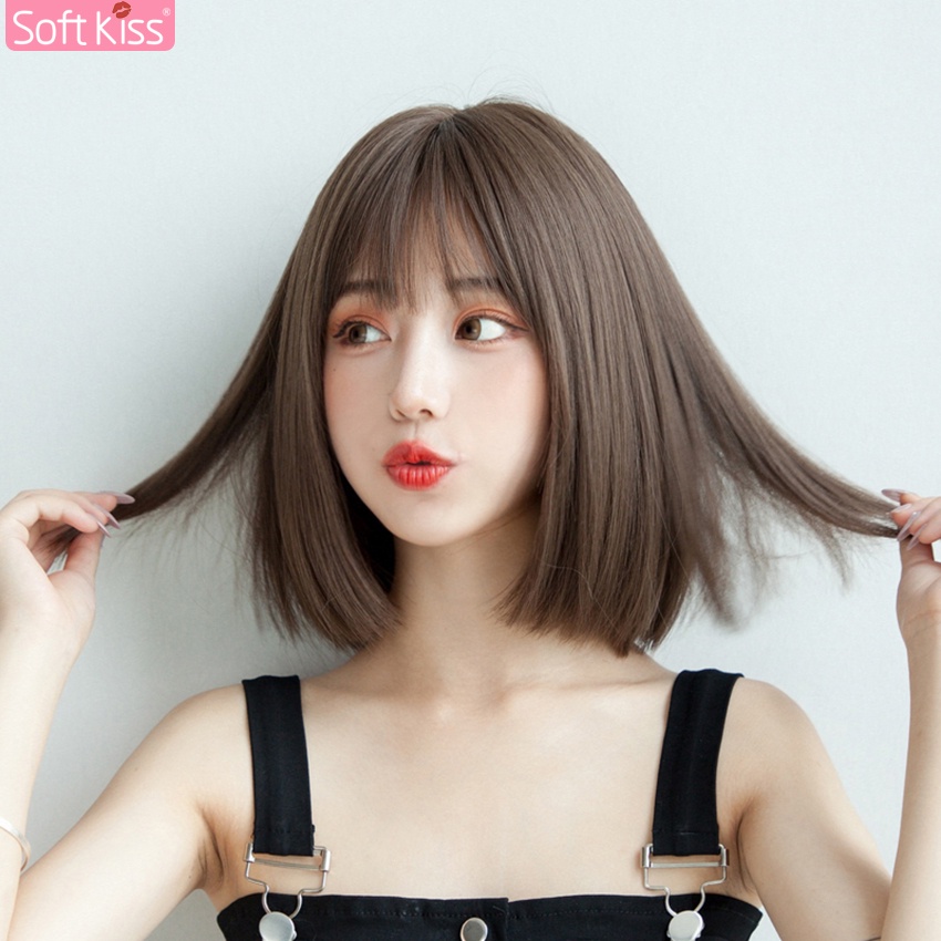 Softkiss วิกผมสั้นหน้าม้า วิกผมสั้น แฮร์พีช วิกผู้หญิง ฟรีตาข่ายคลุมผม