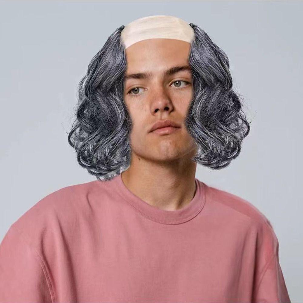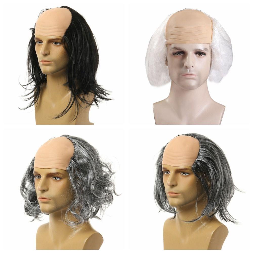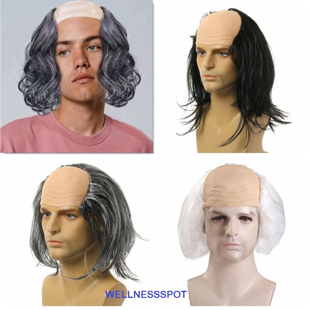 Wellnessspot วิกผมหัวล้านตลก, วิกผมหัวล้านปลอมลอน, คอสเพลย์ปาร์ตี้นุ่มตรงปุยฮาโลวีนหัวล้านวิกผม Masquerade แสดง