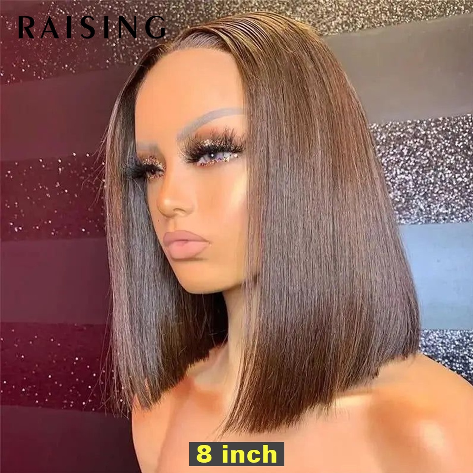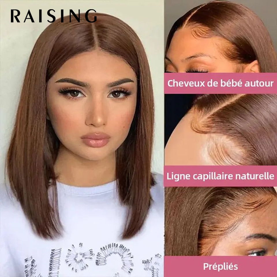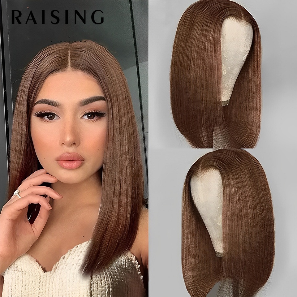 Raising วิกผมบ๊อบสั้น สีน้ําตาลช็อคโกแลต 13×4 สําหรับผู้หญิง