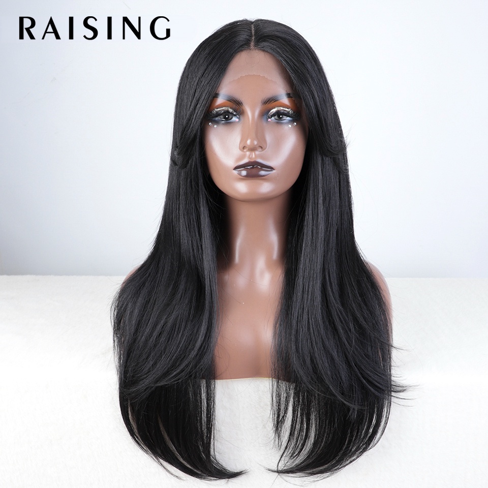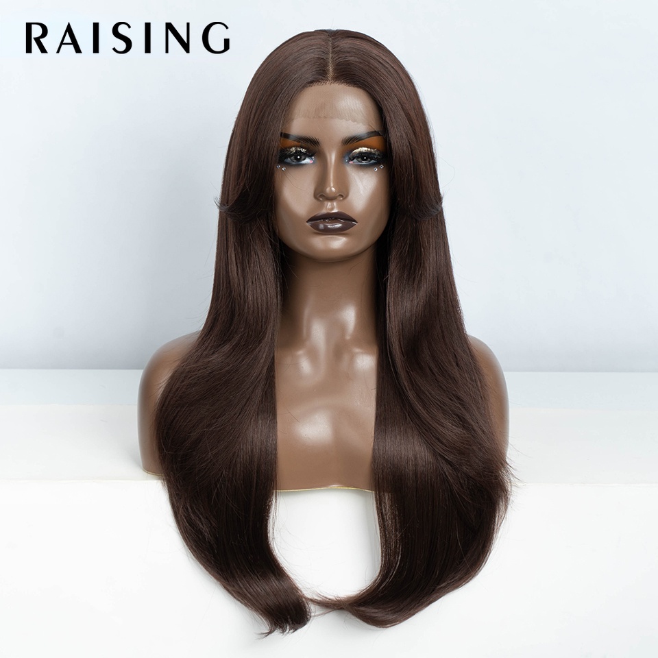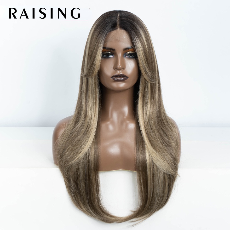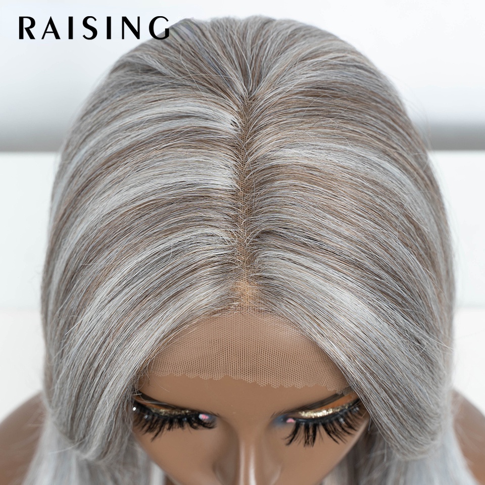 Raising วิกผมสังเคราะห์ ลูกไม้ด้านหน้า ยาว 26 นิ้ว ตรง วิกผมหน้าม้า สีน้ําตาลบลอนด์ สีเทา สีแดง คอสเพลย์ สําหรับผู้หญิง
