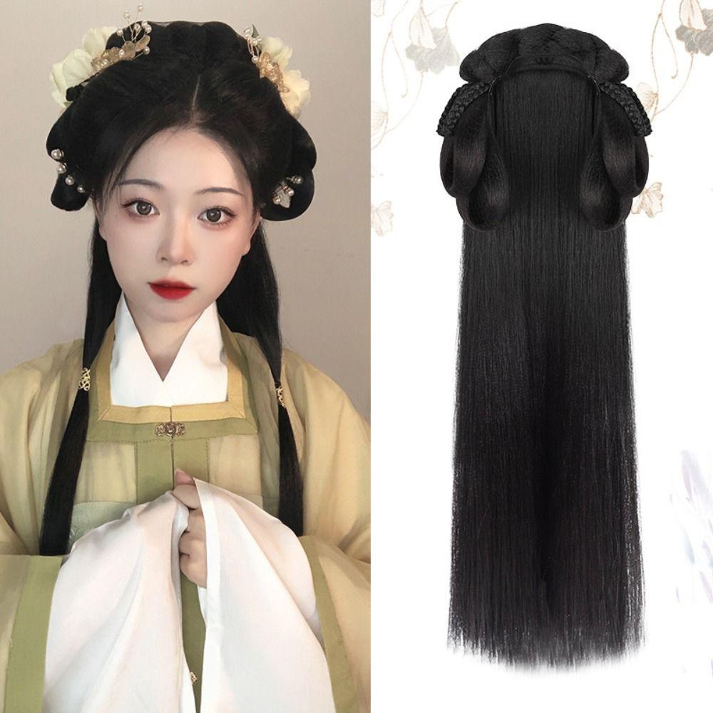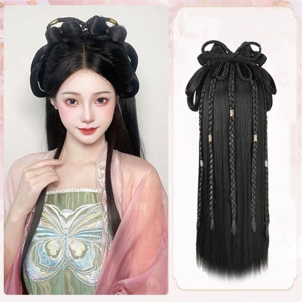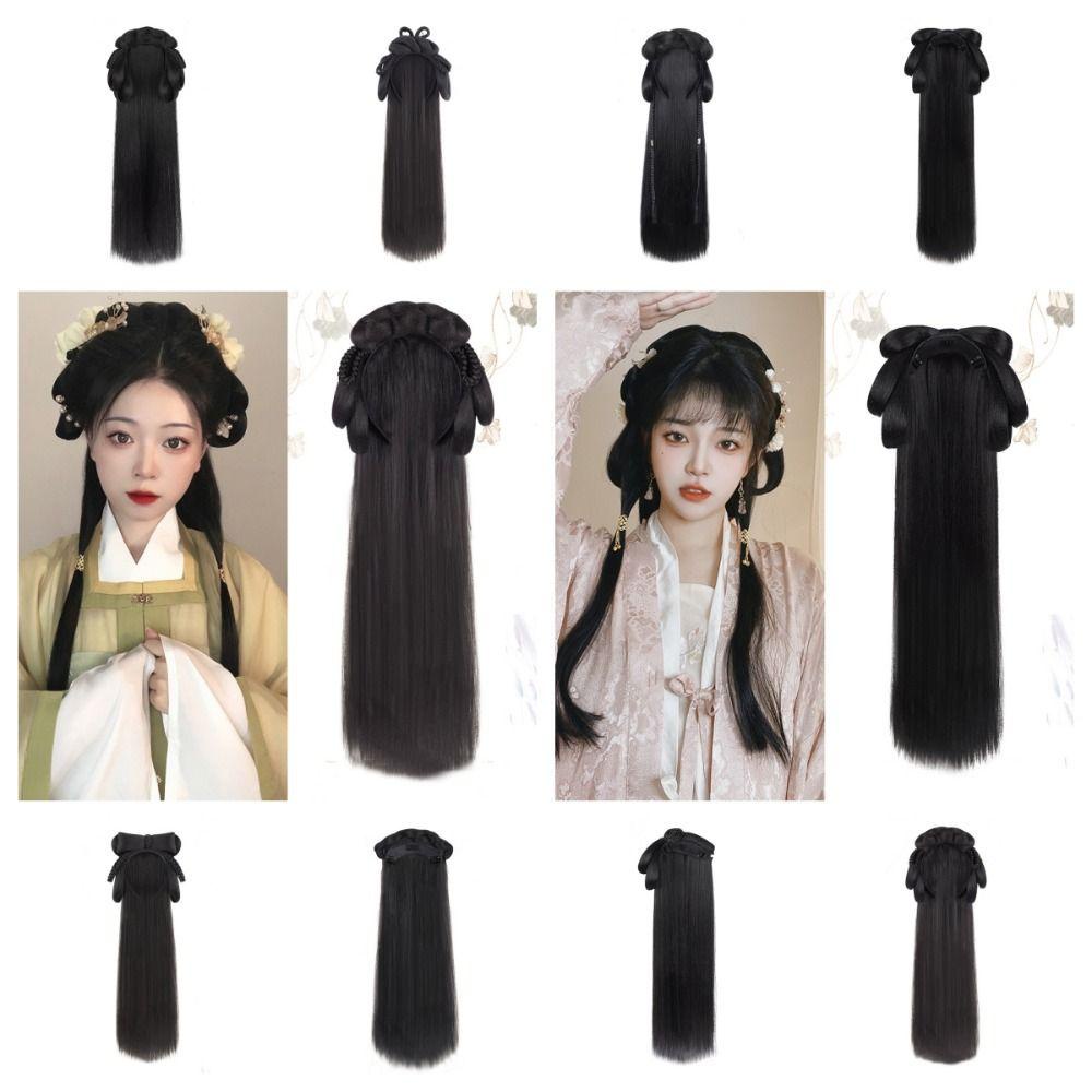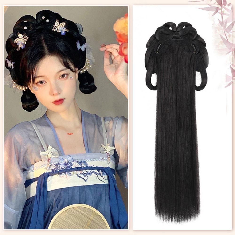 Wellnesshaven วิกผมจีนโบราณ,ยาวสังเคราะห์Hanfuวิกผมที่คาดผม,เต้นรําอุปกรณ์เสริมWigsการถ่ายภาพธรรมชาติที่มองไม่เห็นHanfuคอสเพลย์Hairpiecesผู้หญิง