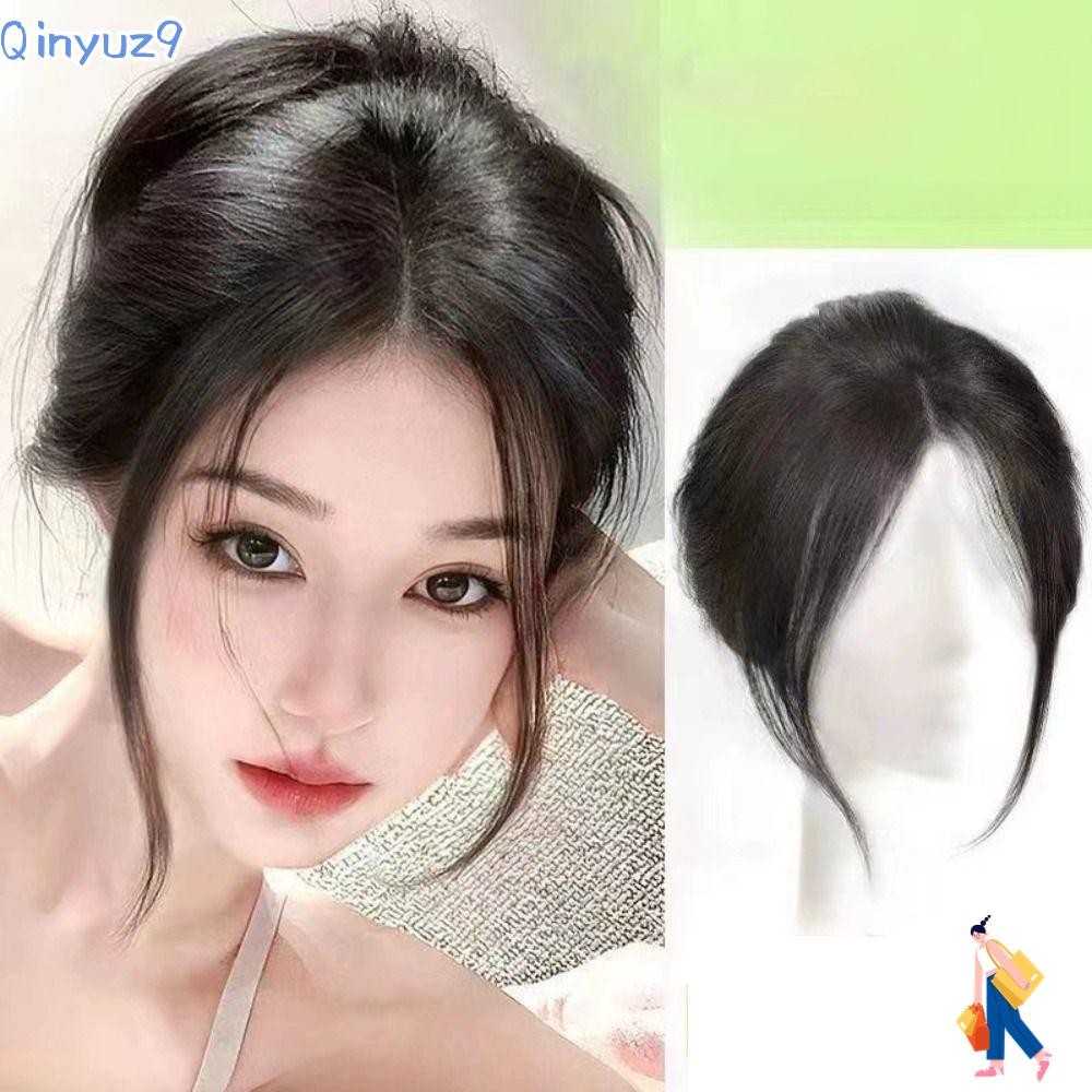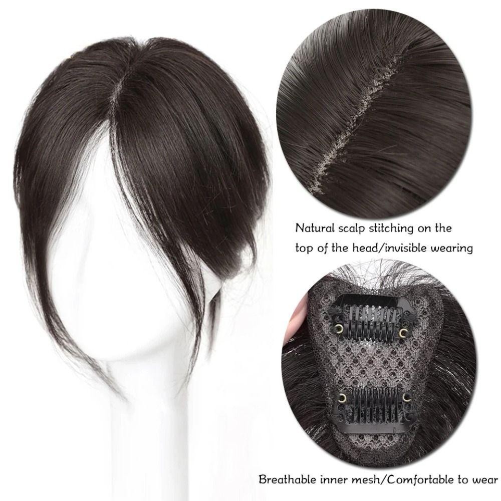 Qinyuz9 ผมม้าปลอม, ส่วนตรงกลางสังเคราะห์ผมม้าธรรมชาติ, ที่มองไม่เห็นคลิปด้านข้าง Fringe Hairpieces ผู้หญิง