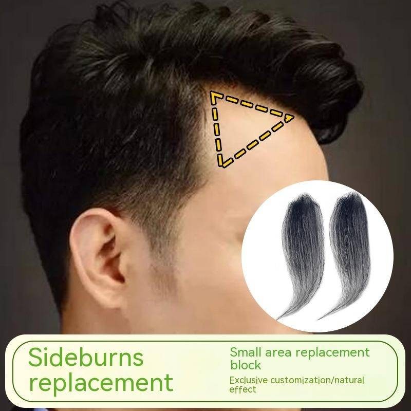Sideburns แผ่นแปะผมมนุษย์ 100% เปลี่ยนผมสีดํา ระบายอากาศ และน้ําหนักเบา เพิ่มวอลลุ่มผม สําหรับผู้ชาย