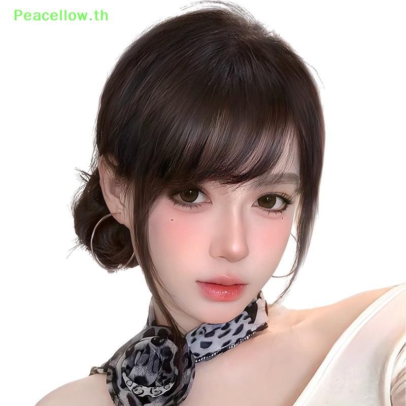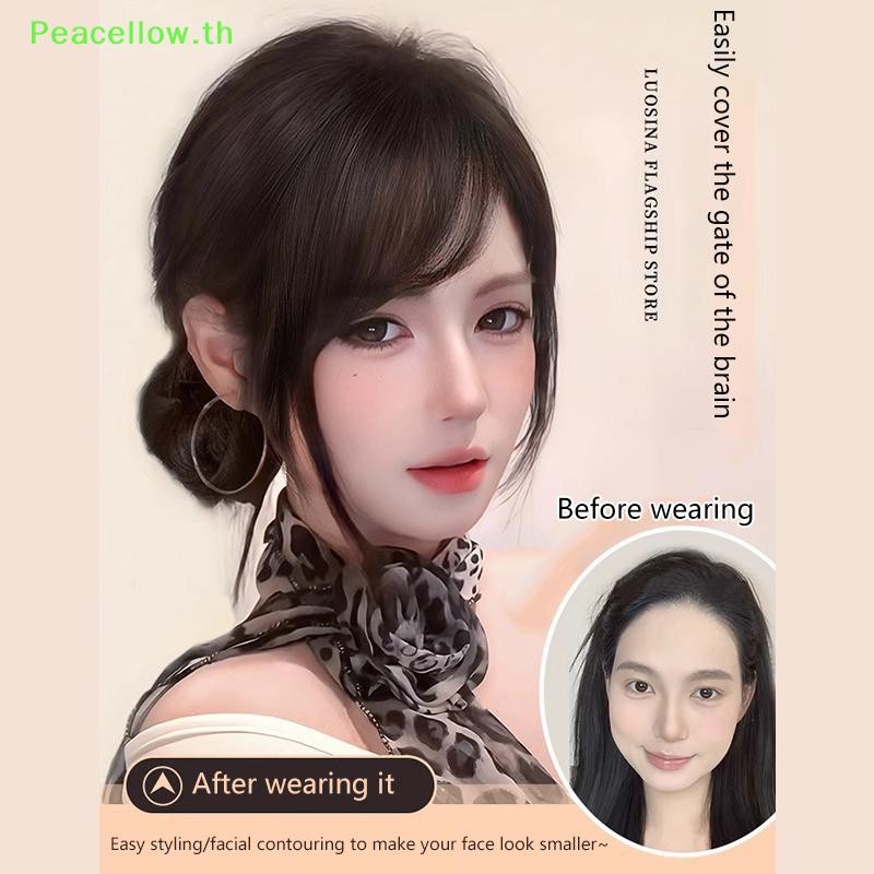 Peacellow สังเคราะห์เอียง Air Bangs Hairpiece Mini ปลอม Bangs ธรรมชาติที่มองไม่เห็น Hairpiece Extension สําหรับสาวจัดแต่งทรงผมอุปกรณ์เสริม TH
