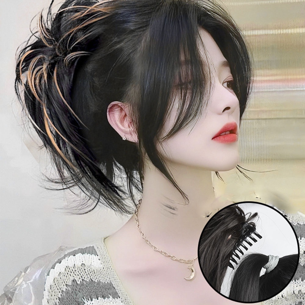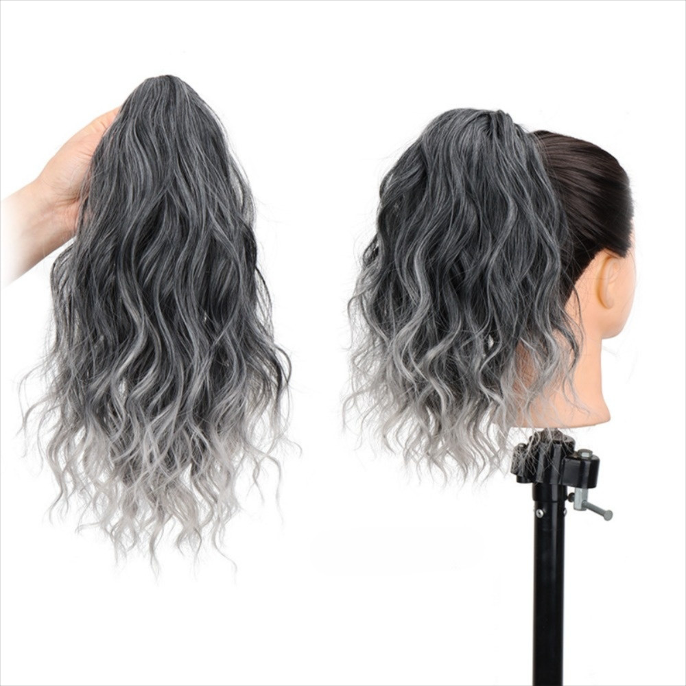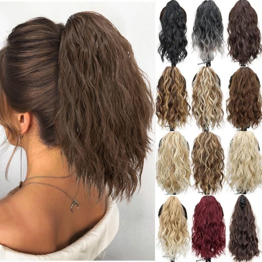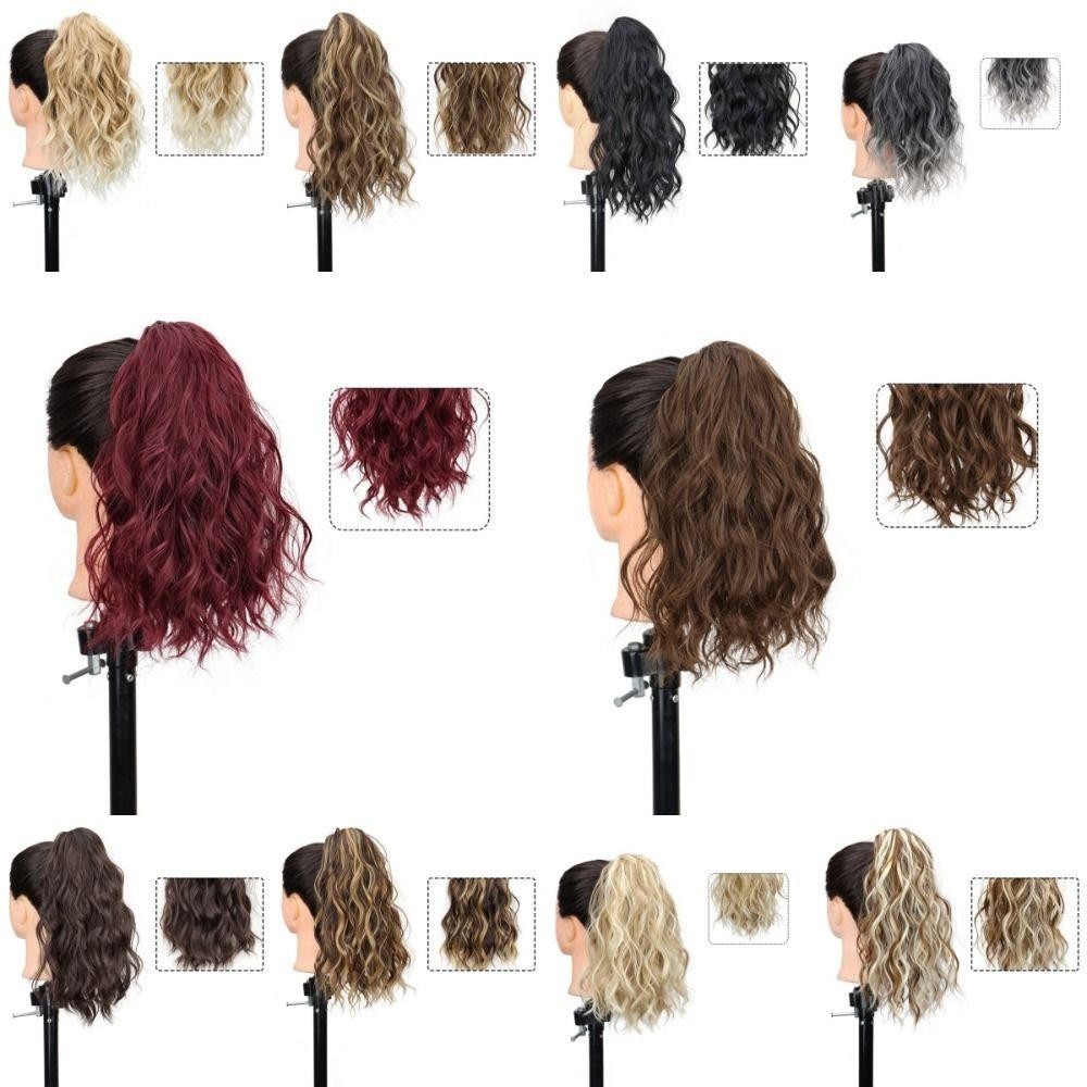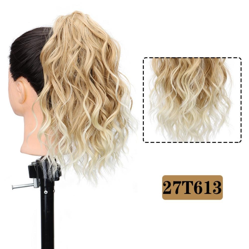PATRIA คลิปกรงเล็บวิกผมหางม้า ดัดข้าวโพด ผมหางม้าขยายสั้นหยักหยิก คลิปไฟเบอร์ทนความร้อน Ombre Natural Pony Tail Hairpiece ทุกวัน