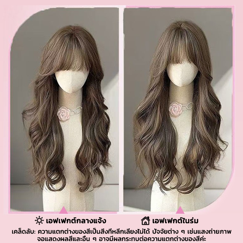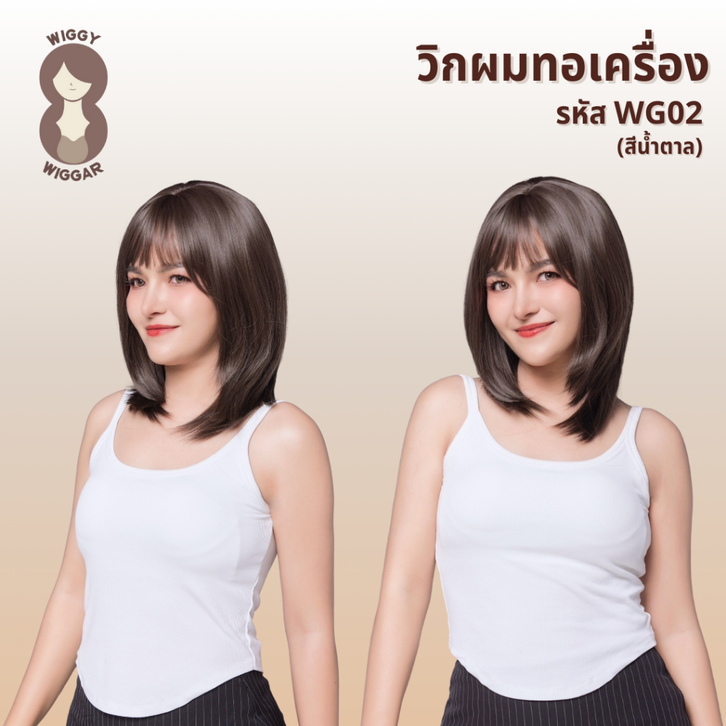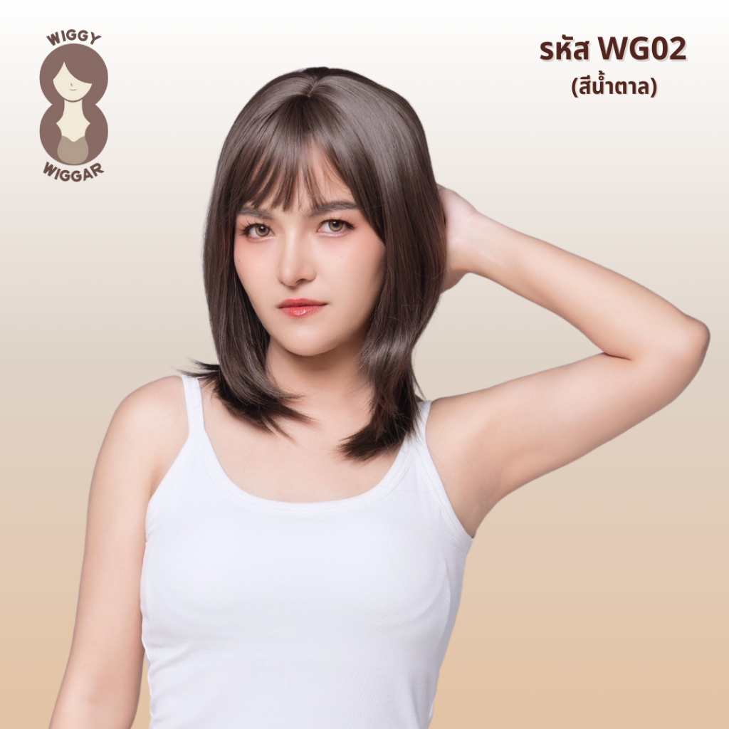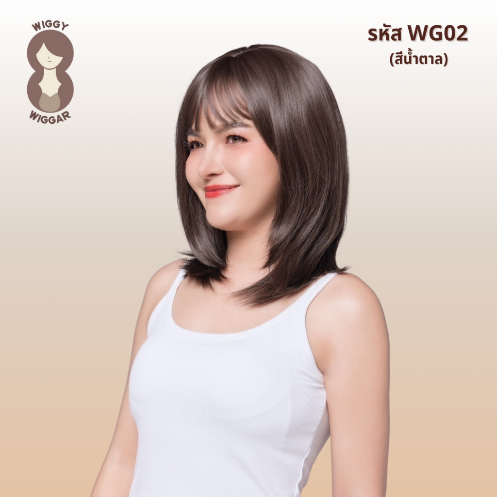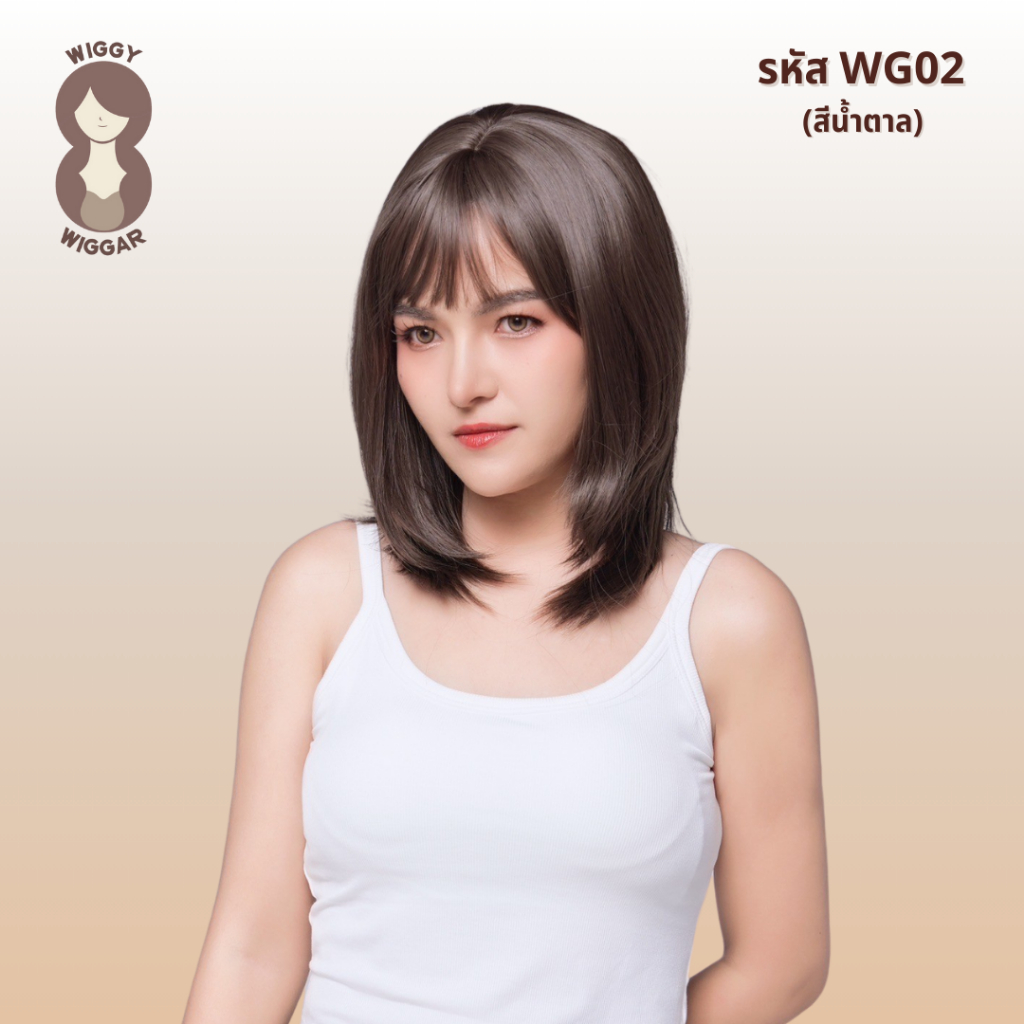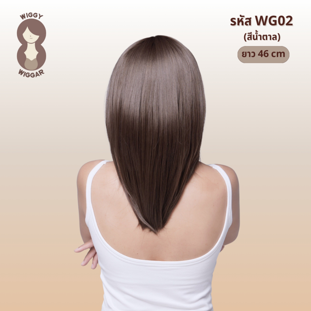 WG02 : วิกผมยาวสไลด์ปลายสีน้ำตาล-หน้าม้า (เน็ต+หวี+ขาตั้ง)