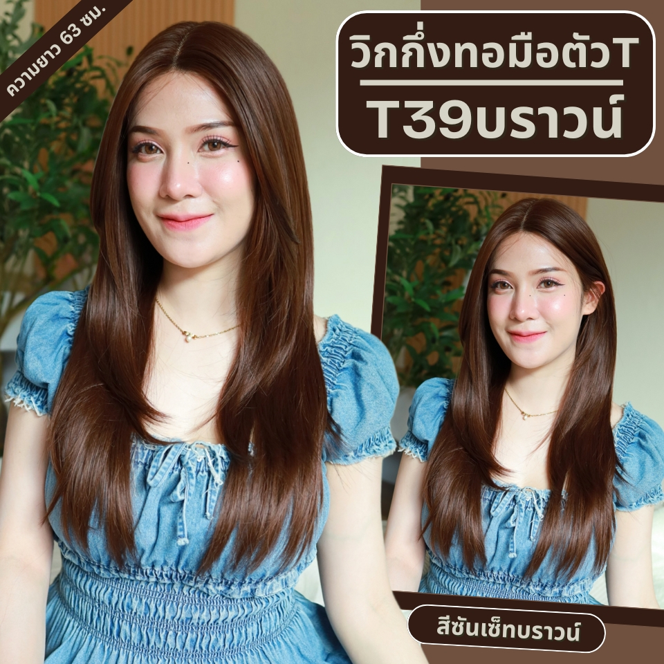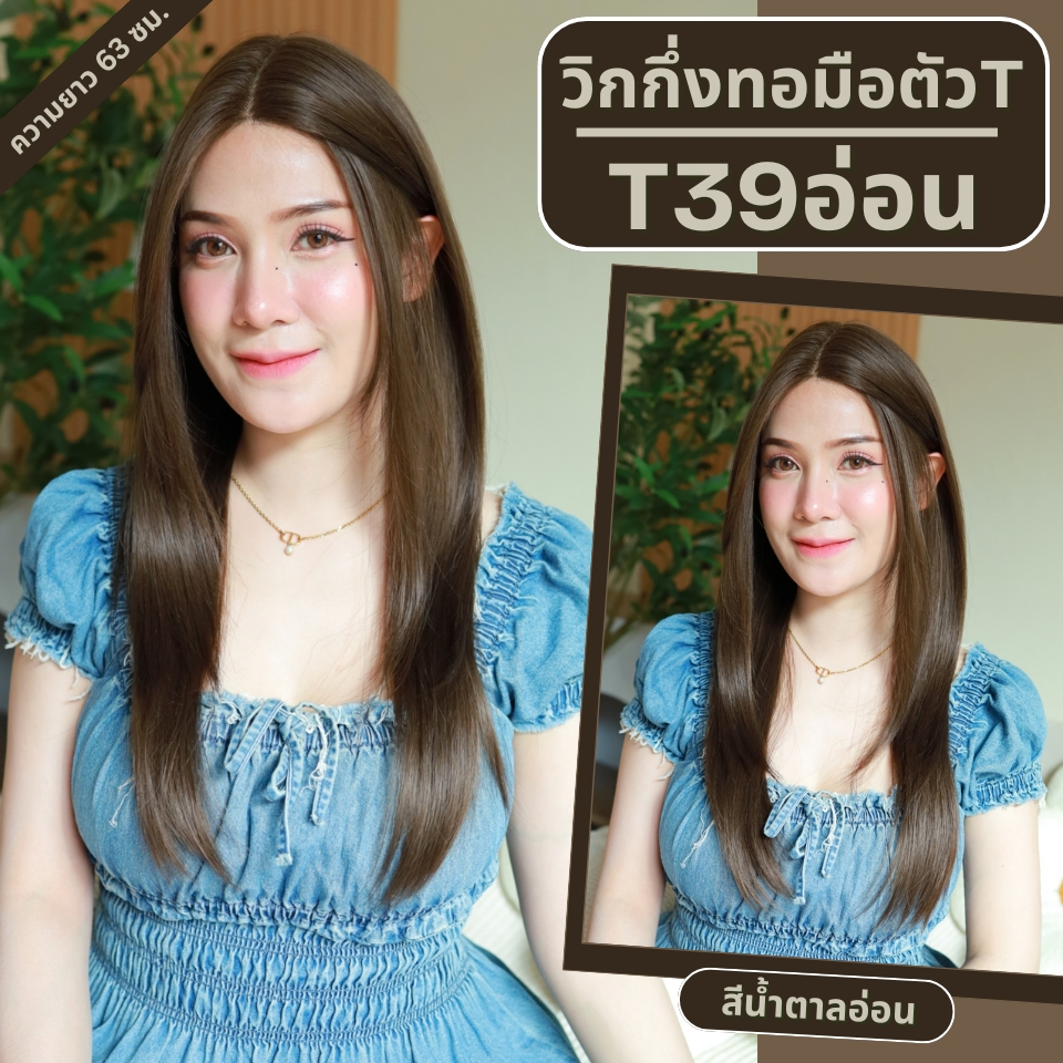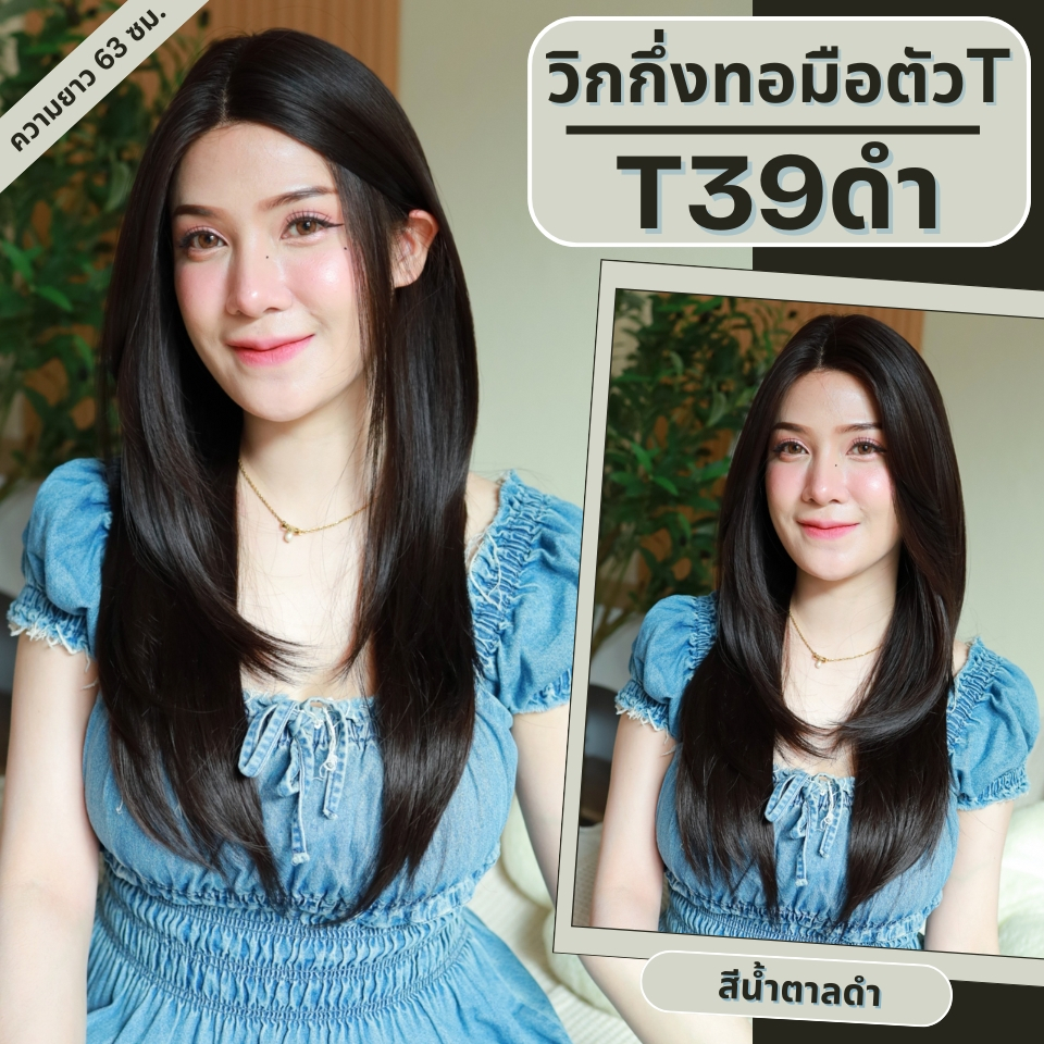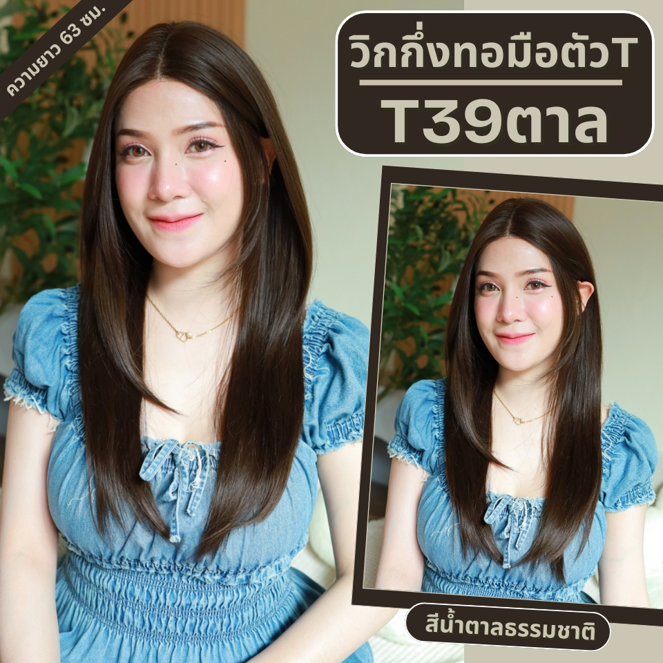 T39 : วิกผมงุ้มเล็กน้อยปลายสไลค์(กึ่งทอมือตัวTตัดขอบแล้ว) (แบบไม่ต้องติดกาว)(แถมหวี+สเปร์ย+เน็ตถุงน่อง+ขาตั้ง)