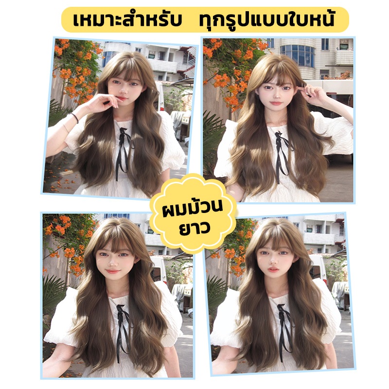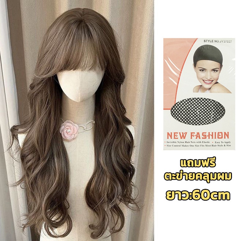 Turspid วิกผม วิกผมลอน วิกผมหญิง วิกผมผู้หญิง แฮร์พีชผมลอน วิกผมยาว วิกผมแท้ ยาว60 cm แถมฟรีเน็ต ใส่สบาย ระบายอากาศดี