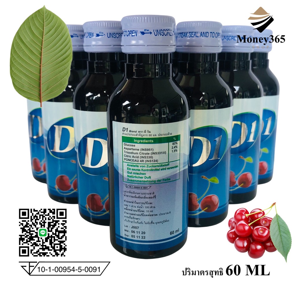 (ส่งถูก+ถูกสุด)แพค 50 ขวด (แถม 2 ขวด) D1 น้ำหวานเข้มข้นกลิ่นเชอรี่ ปริมาณ 60 ml