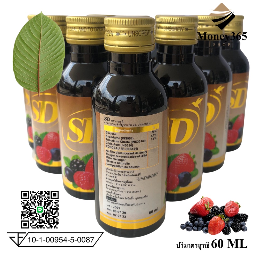 (ส่งถูก+ถูกสุด)แพค 10 ขวด SD (เอสดี) น้ำหวานเข้มข้นกลิ่นมิกซ์เบอร์รี่ ปริมาณ 60 ml บรรจุ 10 ขวด/แพค แถมปากกาฟรี 1 ด้าม