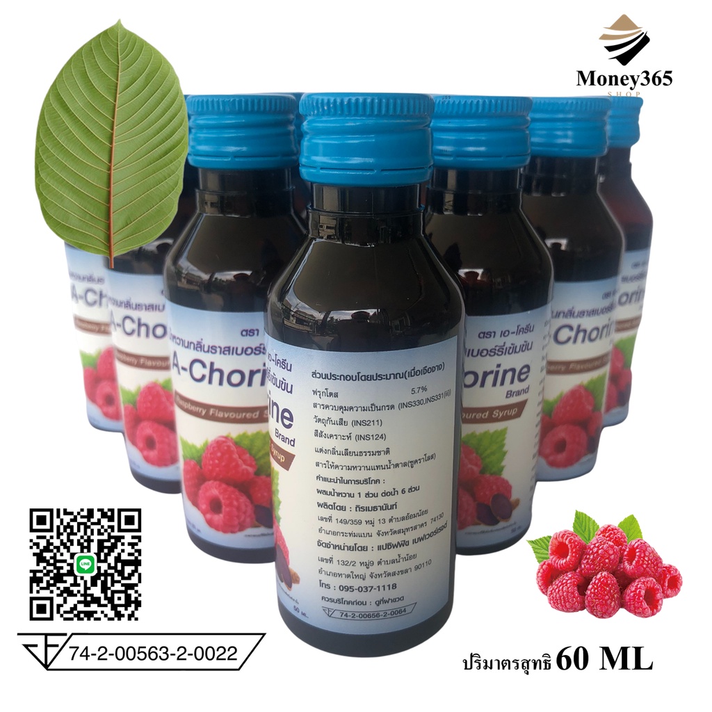 (ส่งถูก+ถูกสุด)แพค 1 ขวด A-Chorine (เอ-โครีน) น้ำหวานกลิ่นราสเบอร์รี่เข้มข้น ปริมาณ 60 ml