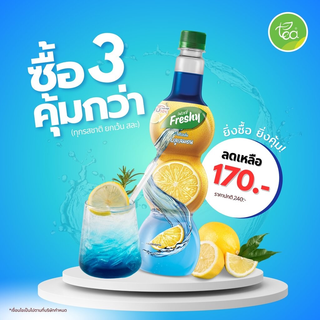 [กดซื้อ 3 ขวด เหลือ 170 บาท ] ไซรัปบลูเลม่อน ไซรัปรบลูฮาวาย Freshy ไซรัปเฟรชชี่ ไซรัปผลไม้ น้ำเชื่อมผลไม้ ไซรัปเข้มข้…