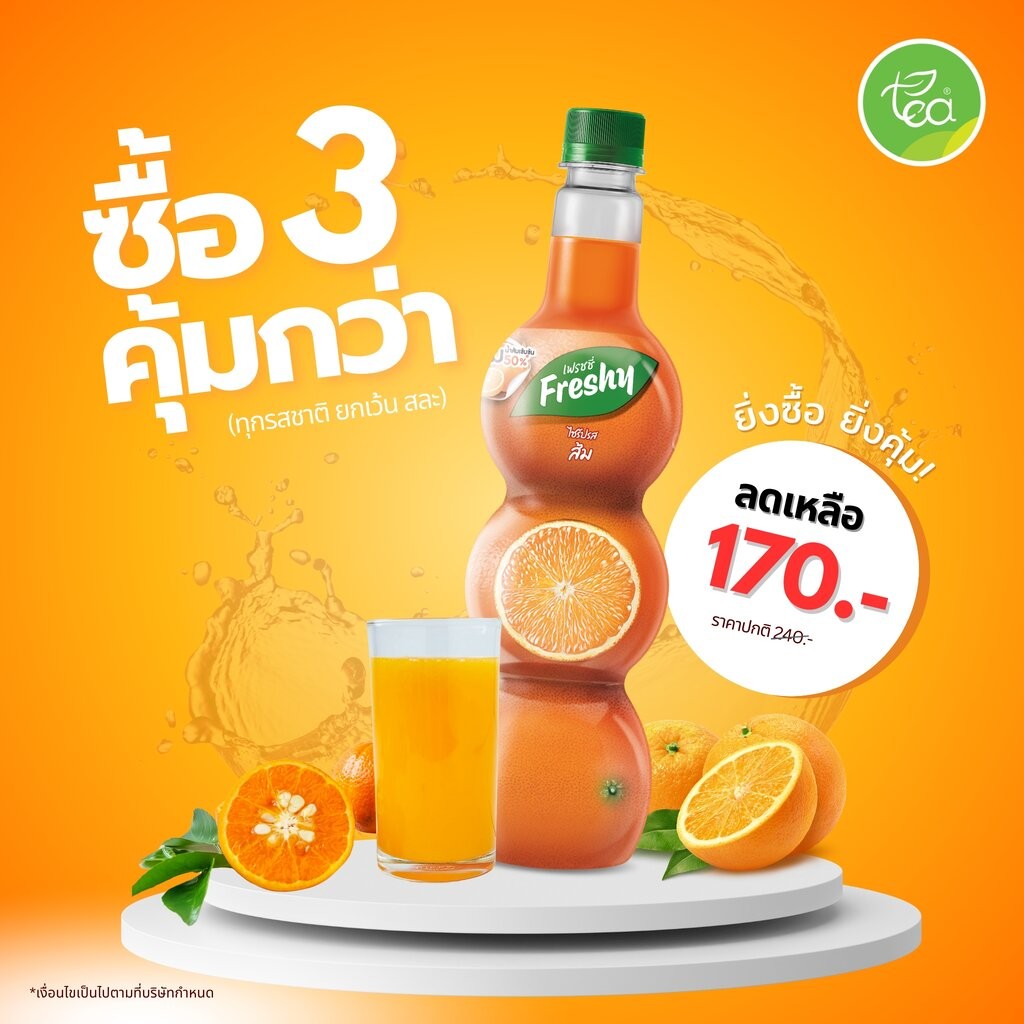 [กดซื้อ 3 ขวด เหลือ 170 บาท ] ไซรัปส้ม Freshy ไซรัปเฟรชชี่ น้ำส้ม สำเร็จรูป น้ำผลไม้ น้ำเชื่อมผลไม้ ไซรัปเข้มข้น Oran…