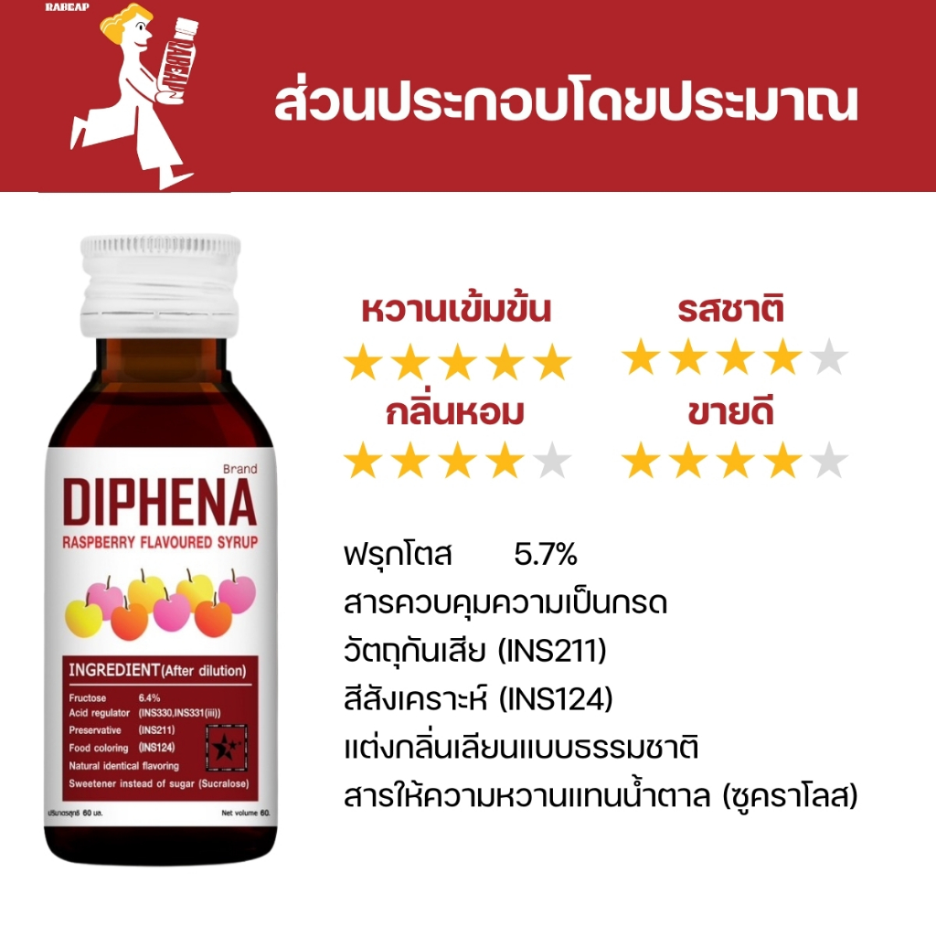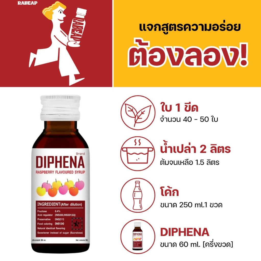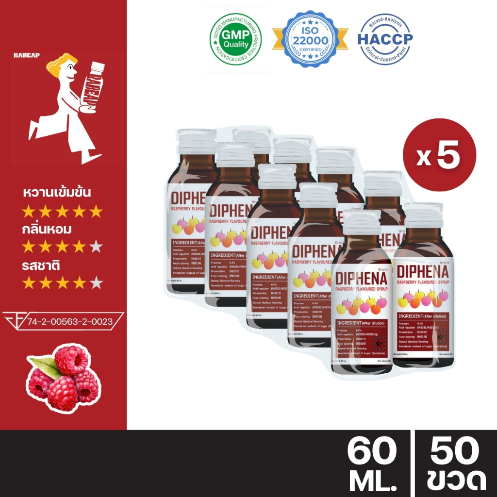 [“ซื้อเยอะถูกกว่า”] Diphena ไดฟีน่า น้ำหวานเข้มข้นรสราสเบอร์รี่ 50 ขวด 60 ml ไซรัป น้ำเชื่อม