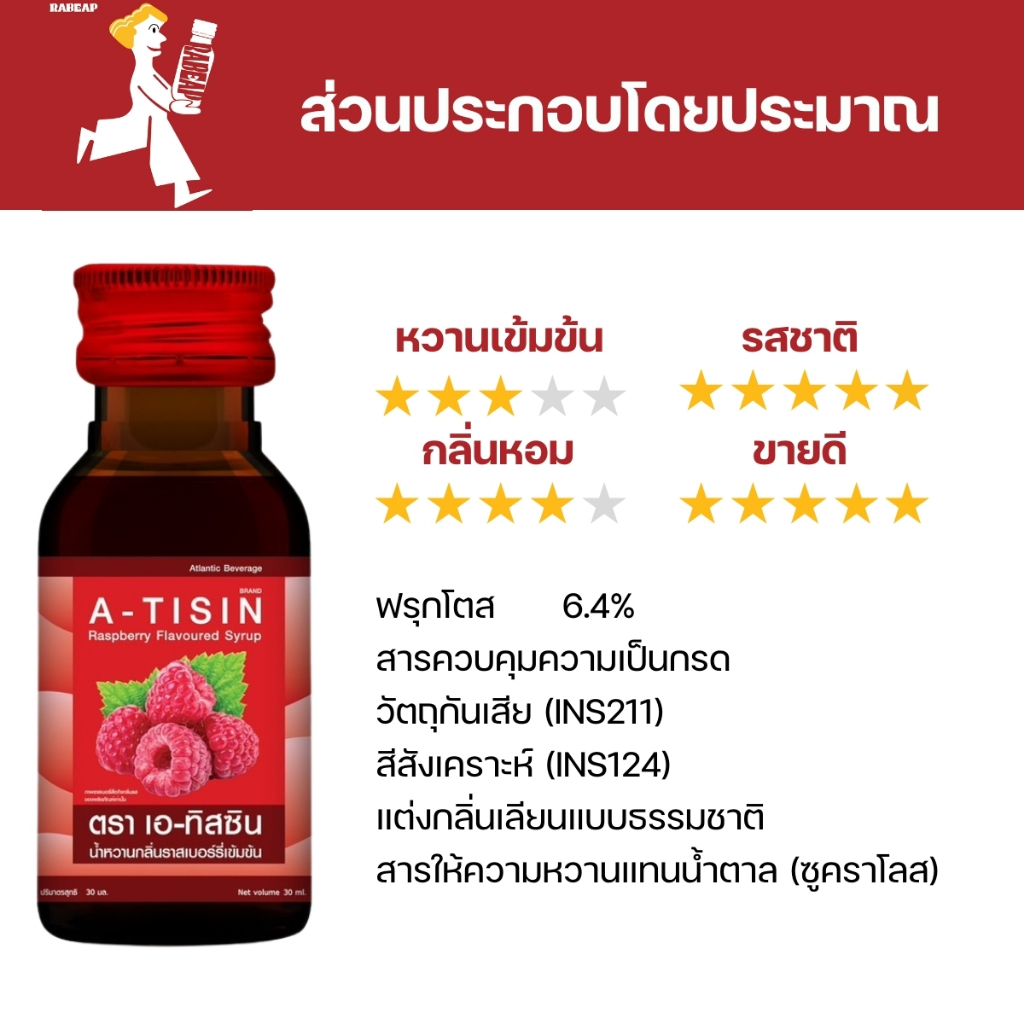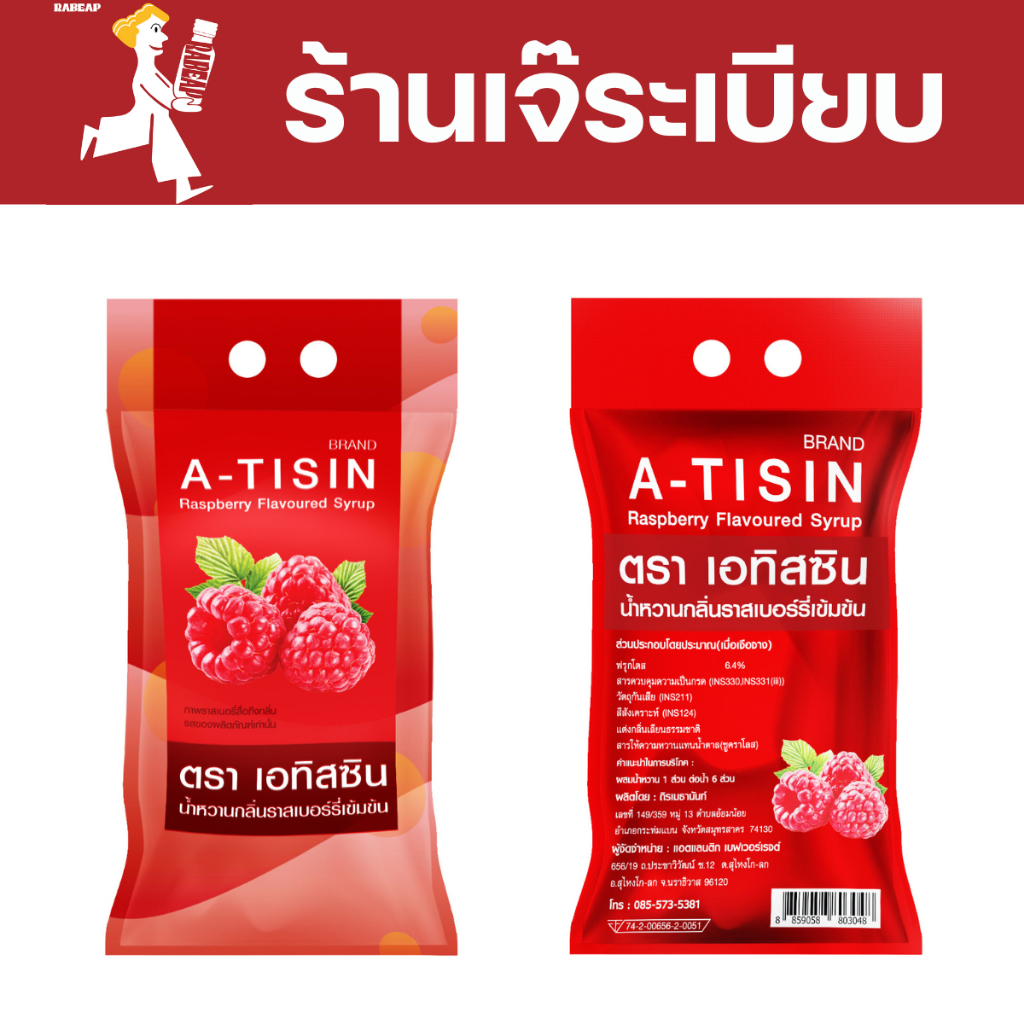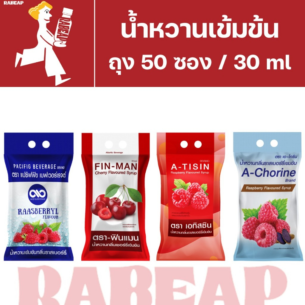[ซื้อเยอะถูกกว่า] A-tisin เอทิสซิน น้ำหวานเข้มข้นรสราสเบอร์รี่ 50 ซอง 30 ml น้ำหวานเข้มข้น น้ำเชื่อม