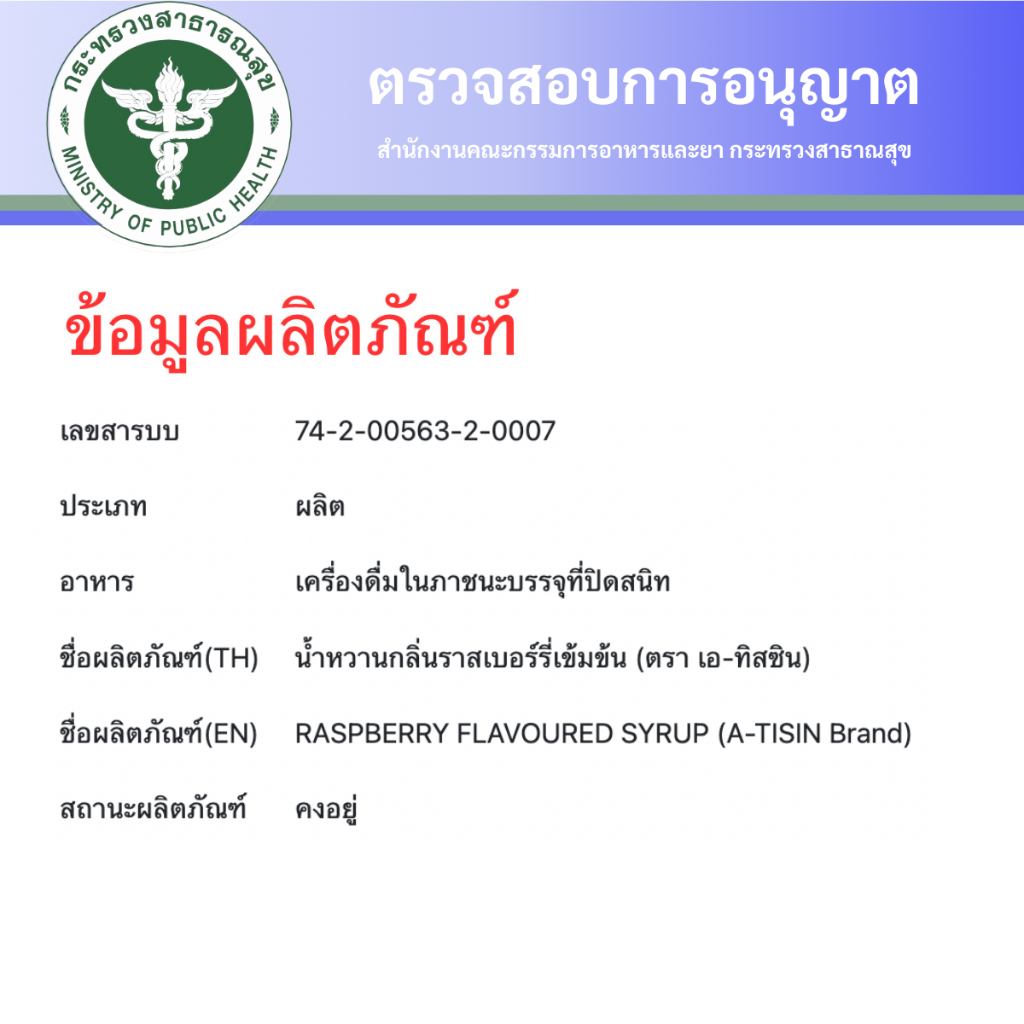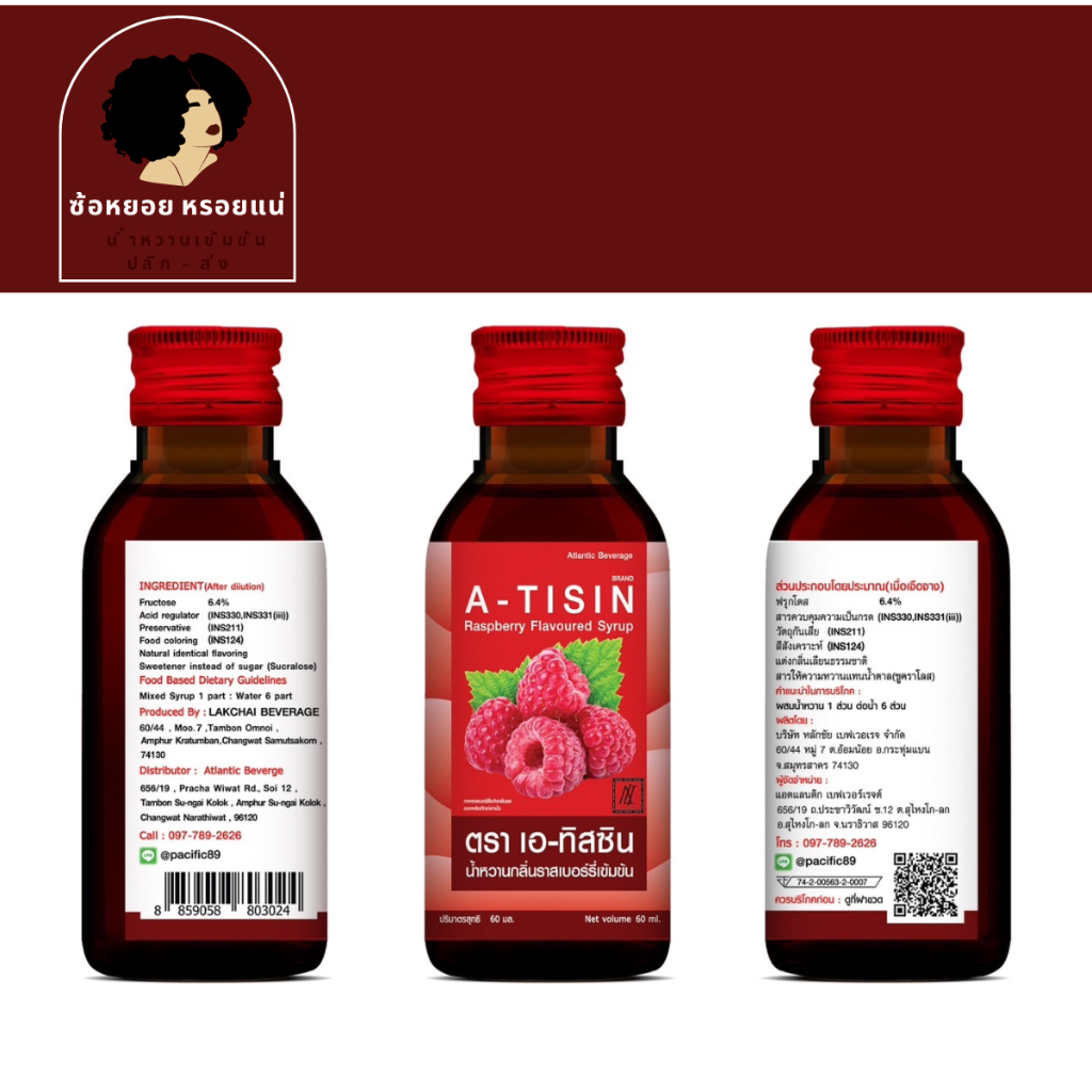 << 1 ขวด >> A – tisin เอทิสซิน น้ำหวานเข้มข้นรสราสเบอร์รี่ ขนาด 60 ml น้ำหวานเข้มข้น น้ำเชื่อม