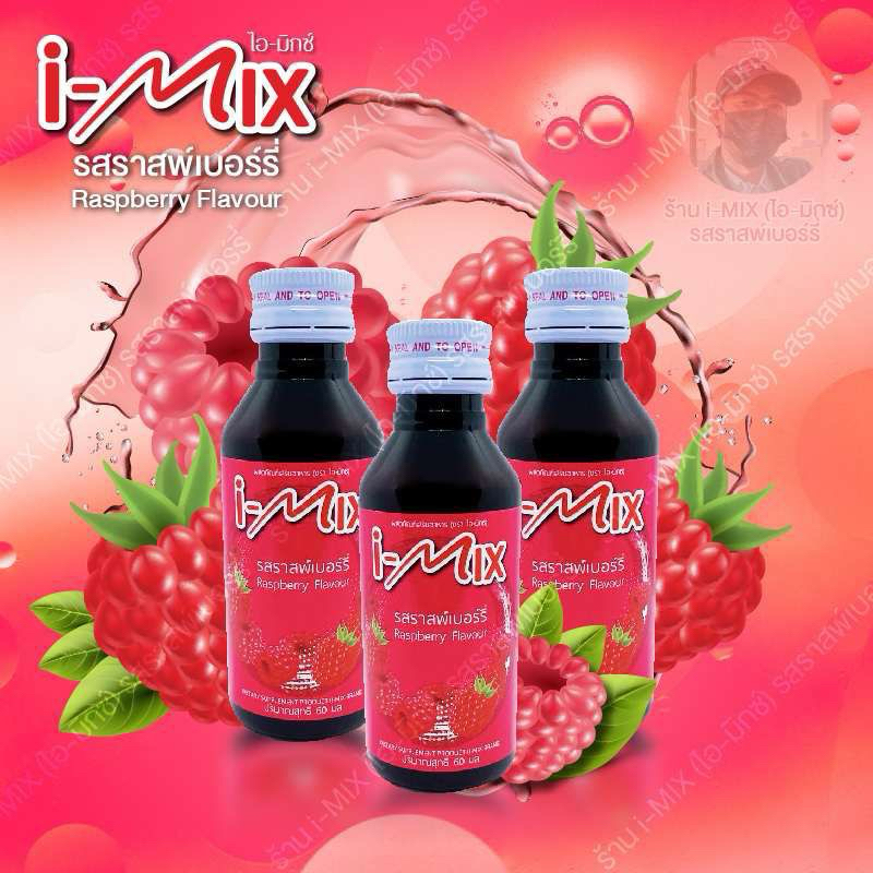 น้ำหวานเข้มข้น ตรา(ไอ-มิกซ์)รสราสพ์เบอร์รี่ (แพ็ค 3 ขวด) ปริมาณ 60 ml