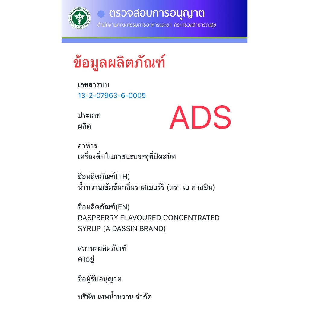 ยกลัง 50 ขวด A-DASSING น้ำหวานเข้มข้นกลิ่นราสเบอรี่ ขนาด 60 ML จำนวน 50 ขวด ADS-50