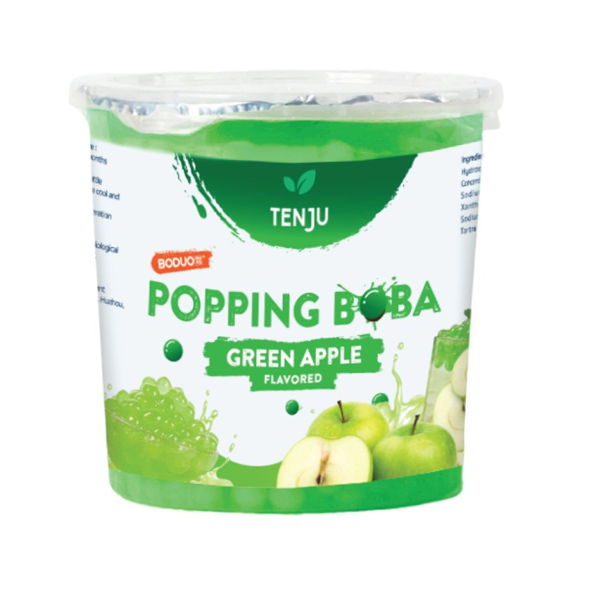 มุกท็อปปิ้ง มุกป็อปรสแอปเปิ้ลเขียว สำหรับเครื่องดื่ม 1kg. ตราเท็นจู หยกออนไลน์