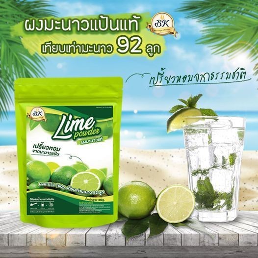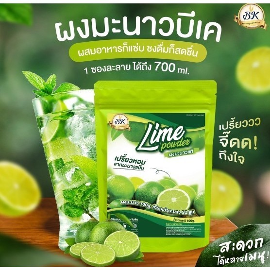 ผงมะนาวแป้น ผงมะนาวแท้ ตราBK 100 กรัม ผงชง มะนาว เปรี้ยวธรรมชาติ เปรี้ยวไม่ปลอม เทียบเท่ามะนาว 92ลูก