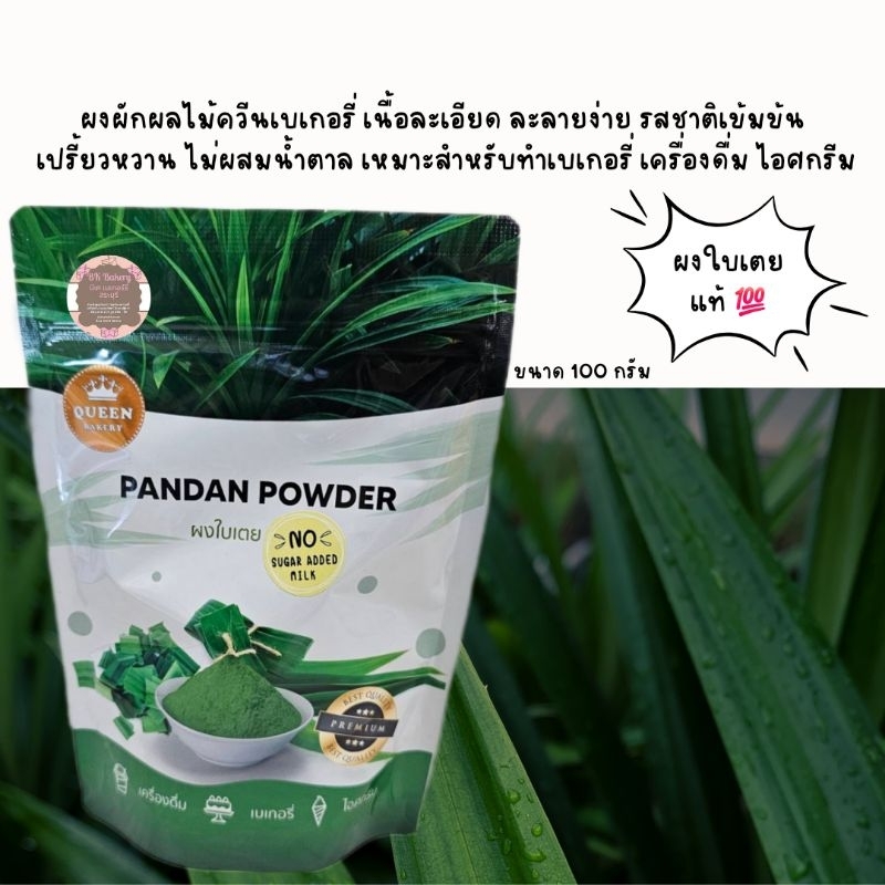 ผงใบเตยแท้ 💯ผงผักผลไม้ควีน ละลายง่าย รสชาติเข้มข้น ไม่ผสมน้ำตาล เหมาะทำเบเกอรี่ เครื่องดื่มไอศกรีม🔹️ 100 กรัม🔹️
