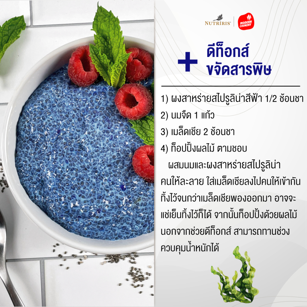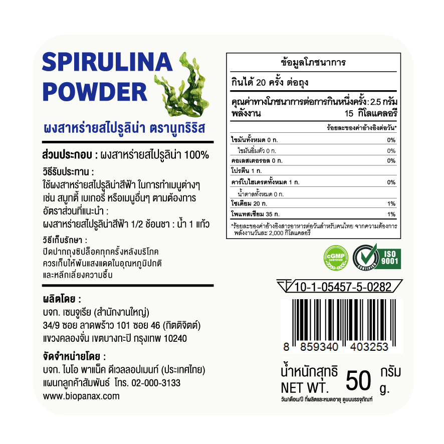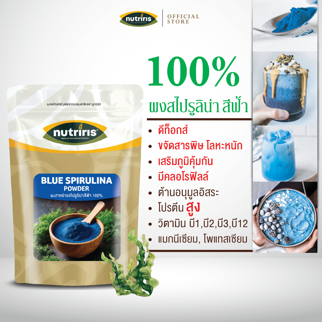 ผงสาหร่ายสไปรูลิน่าสีฟ้า เพียว100% 50 ก Exp10/2026 ผงชง ชะลอวัย ผิว ภูมิคุ้มกัน (Blue Spirulina Powder) NUTRIRIS Brand