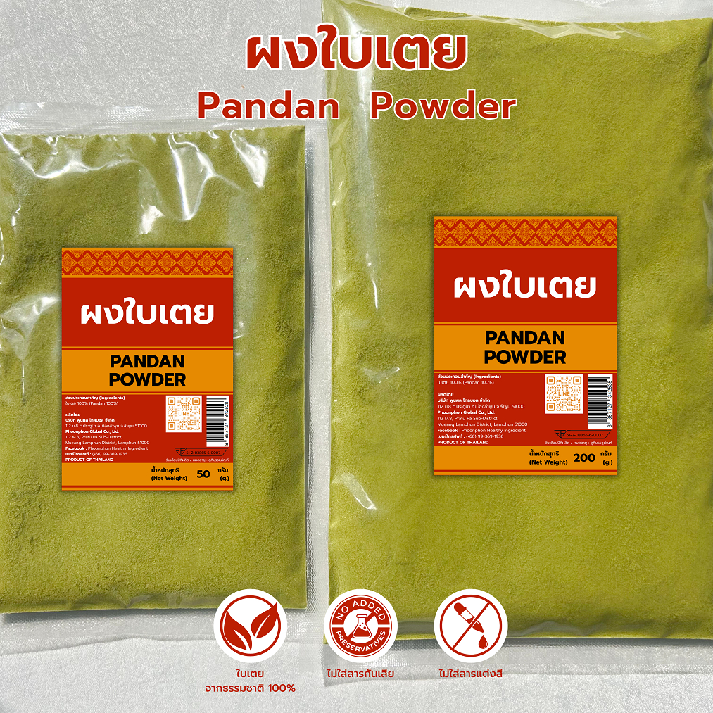 ผงใบเตย 100% สำหรับทำขนมไทย เครื่องดื่มสมุนไพร หอมสดชื่น คุณภาพดี มีอย. ลดเบาหวาน ปรับน้ำตาลในเลือด Pandan Powder