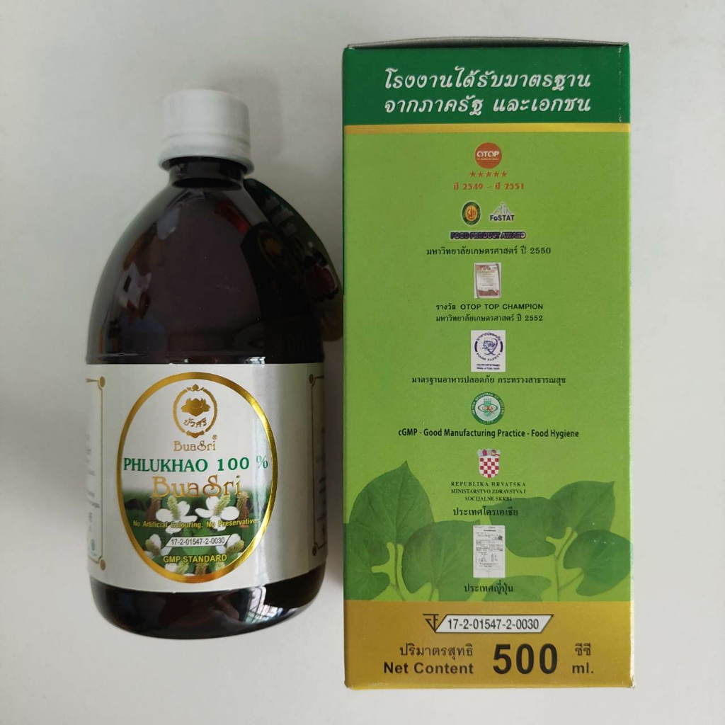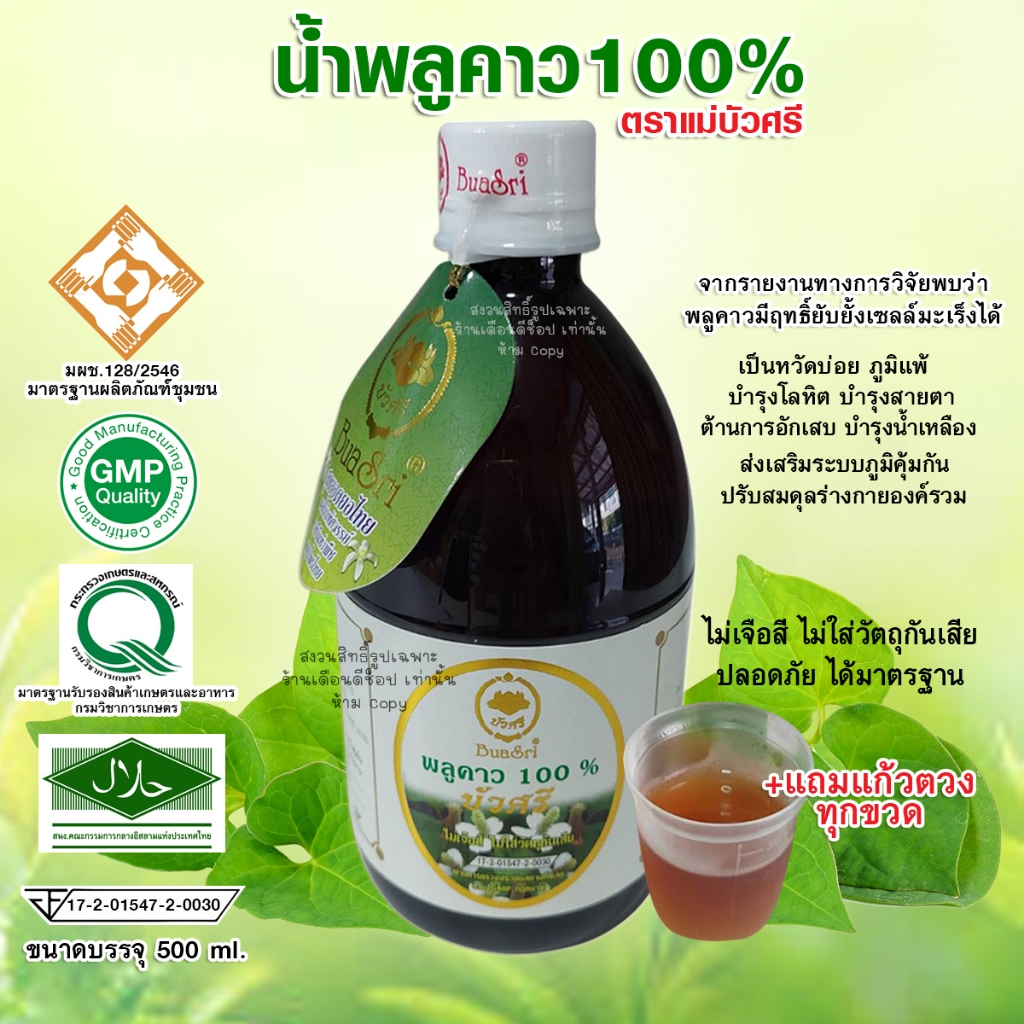 น้ำพลูคาว100% น้ำสมุนไพรพลูคาวสกัดแม่บัวศรี /ขวดแก้ว ขนาดบรรจุ 500ml.