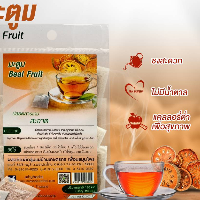 มะตูม ชามะตูม ชาสมุนไพรแบบซองแช่น้ำร้อน ไม่มีน้ำตาล เครื่องดื่มสมุนไพรเพื่อสุขภาพ
