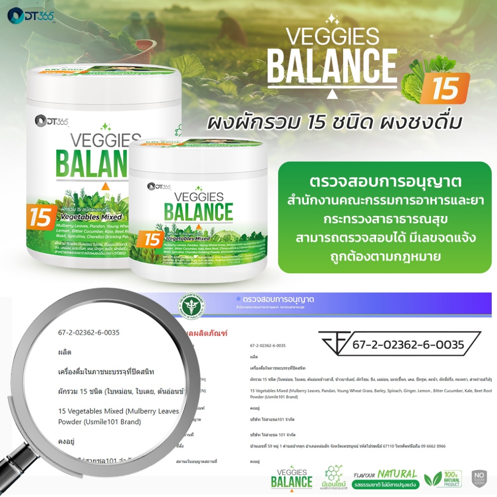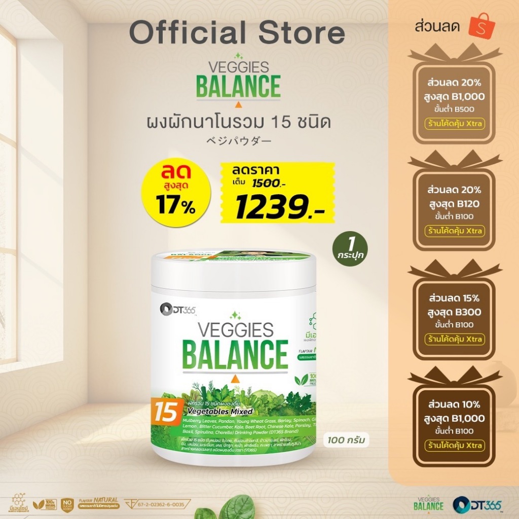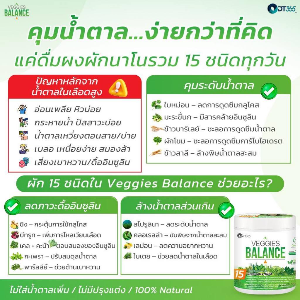 ผงผัก เวจจี้ บาลานซ์ ผักรวม 15 ชนิด เพื่อการดูแลระดับน้ำตาลในเลือด 100 กรัม
