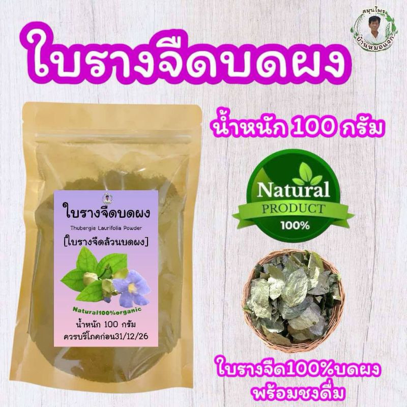 รางจืดบดผง บรรจุ 100 กรัม ใบรางจืดอบแห้งนำมาบดผงใบรางจืดล้วนไม่ผสม