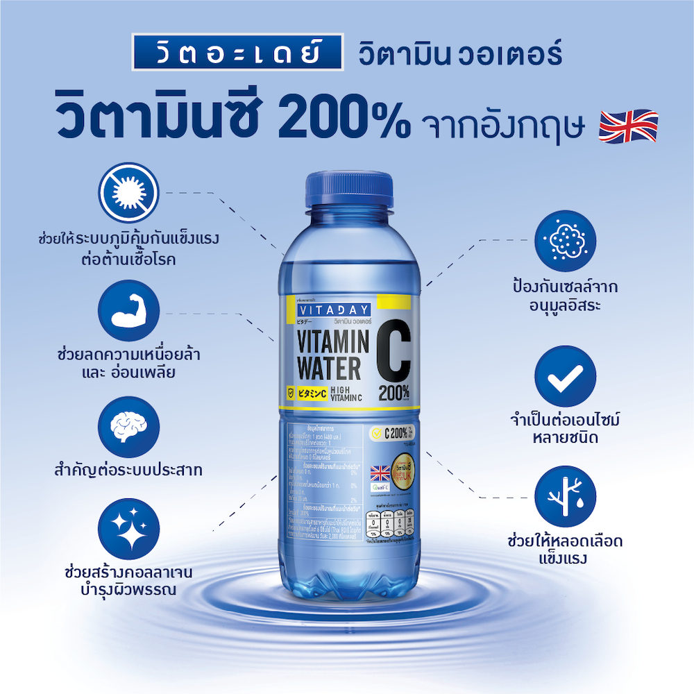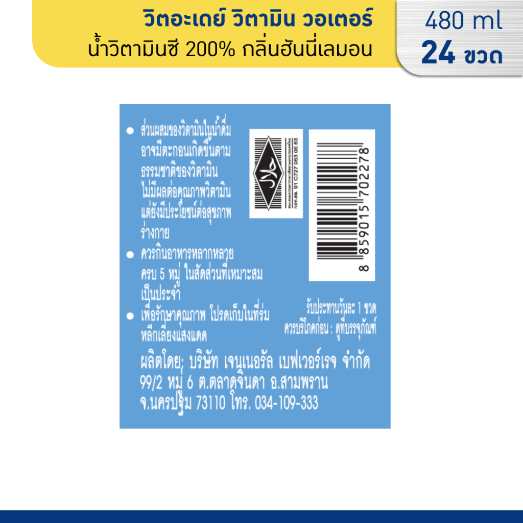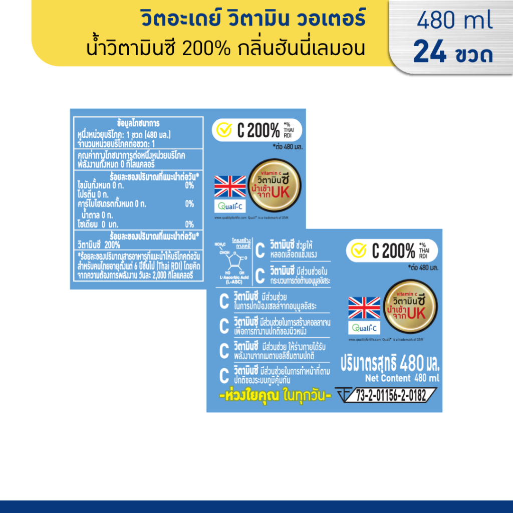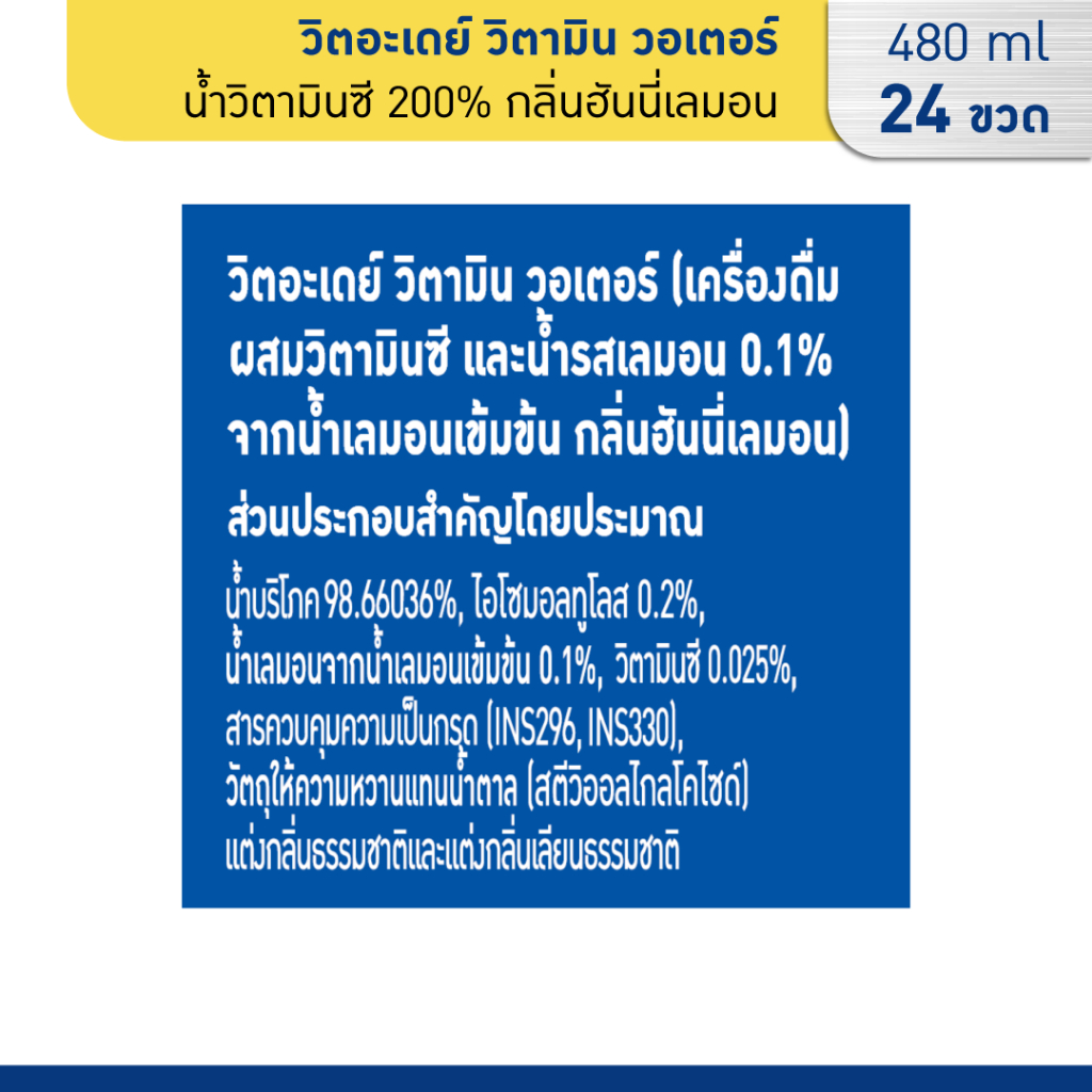 VITADAY วิตอะเดย์ วิตามิน วอเตอร์ น้ำวิตามินซี 250% กลิ่นฮันนี่เลมอน 480 ml x 24 ขวด