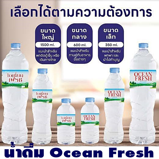 น้ำดื่ม น้ำเปล่า ราคาถูก Ocean Fresh ขวดเล็ก,กลาง,ใหญ่(น้ำดื่มสะอาด คุณภาพดี) พร้อมจัดส่ง