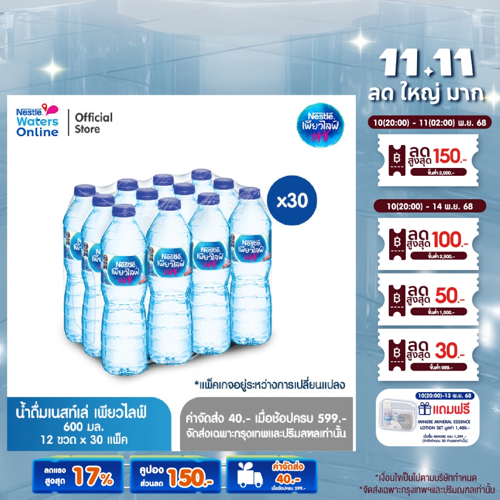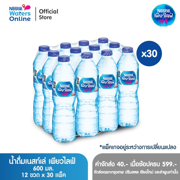 [จัดส่งกรุงเทพฯ ปริมณฑล เชียงใหม่ ลำพูน] เนสท์เล่ เพียวไลฟ์ น้ำดื่ม 0.6 ลิตร (แพ็ค 12 ขวด) x 30 แพ็ค