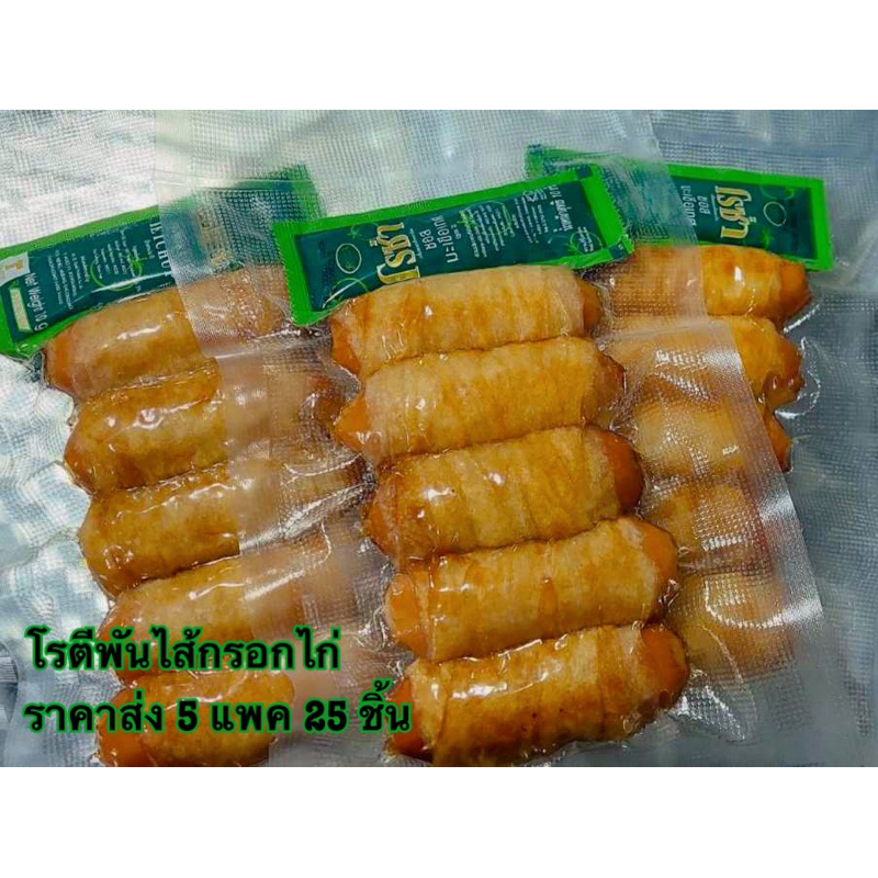 (ราคาส่ง 5 แพค)โรตีพันไส้กรอกไก่หนังกรอบ ฮาลาล มุสลิมผลิต [แพคละ5ชิ้น] #โรตีพันไส้กรอก