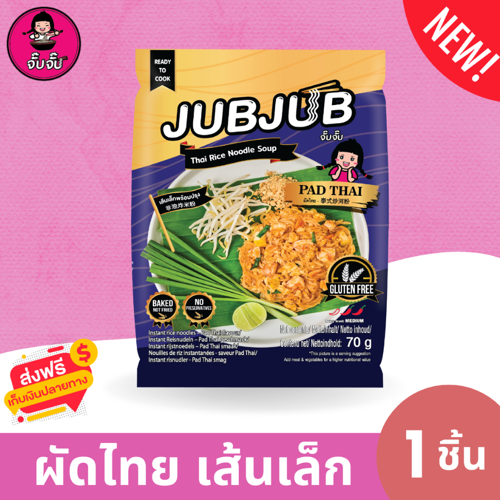 (มีฮาลาล)จั๊บจั๊บ ผัดไทยเส้นเล็ก (1 ซอง) ไม่มีสารกันเสีย ทำง่าย เก็บได้นานเกิน 1 ปี