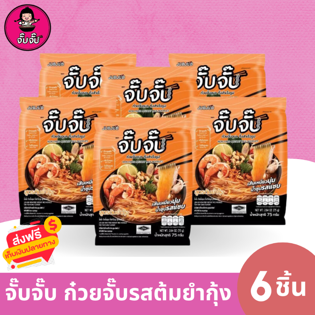 (มีฮาลาล) จั๊บจั๊บ ก๋วยจั๊บญวนสำเร็จรูป รสต้มยำกุ้ง 6 ซอง เวฟ 5 นาที เก็บได้ 1 ปี #ก๋วยจั๊บอุบล
