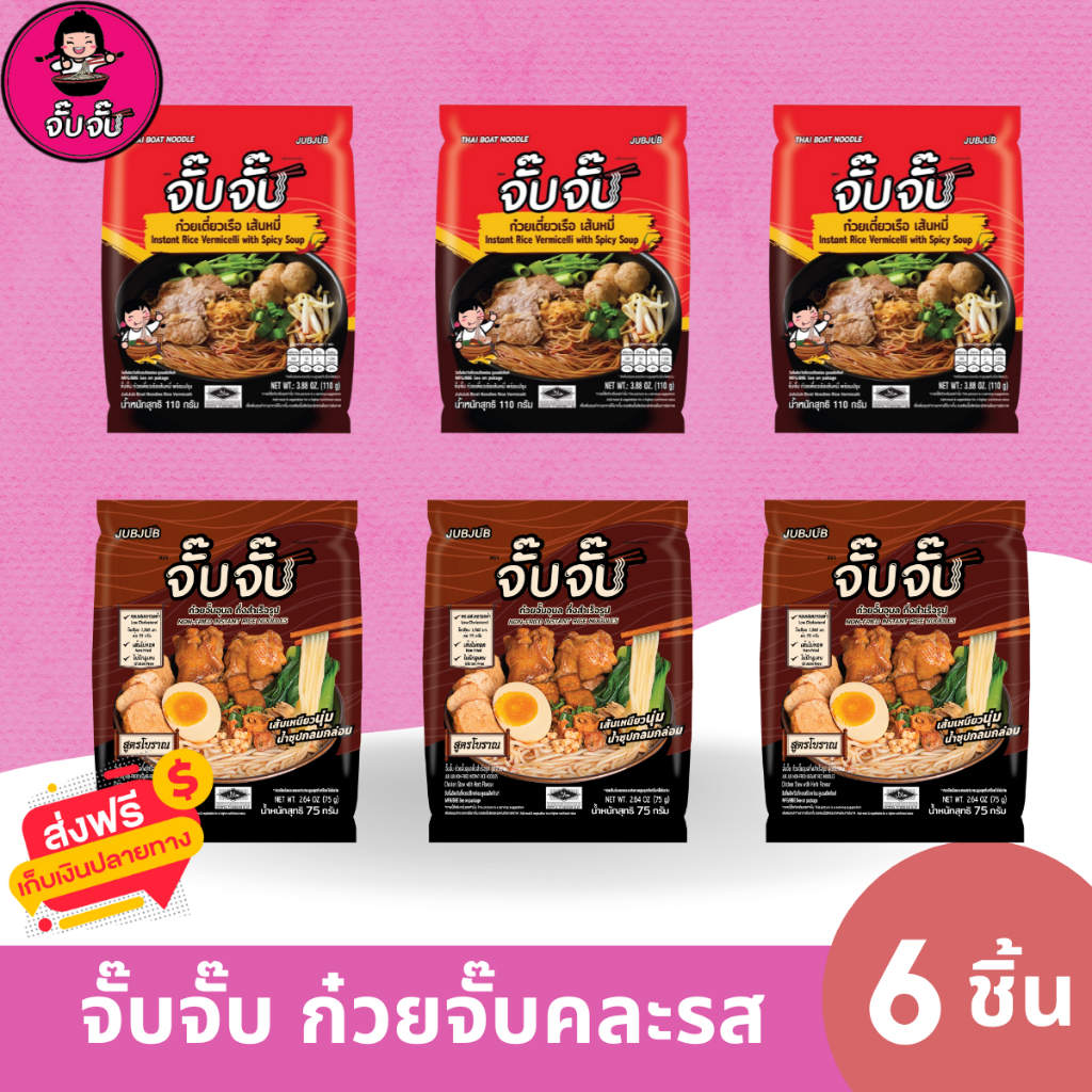 (มีฮาลาล) จั๊บจั๊บ ก๋วยจั๊บอุบล คละรส 6 ซอง (ก๋วยเตี๋ยวเรือ+สูตรโบราณ)
