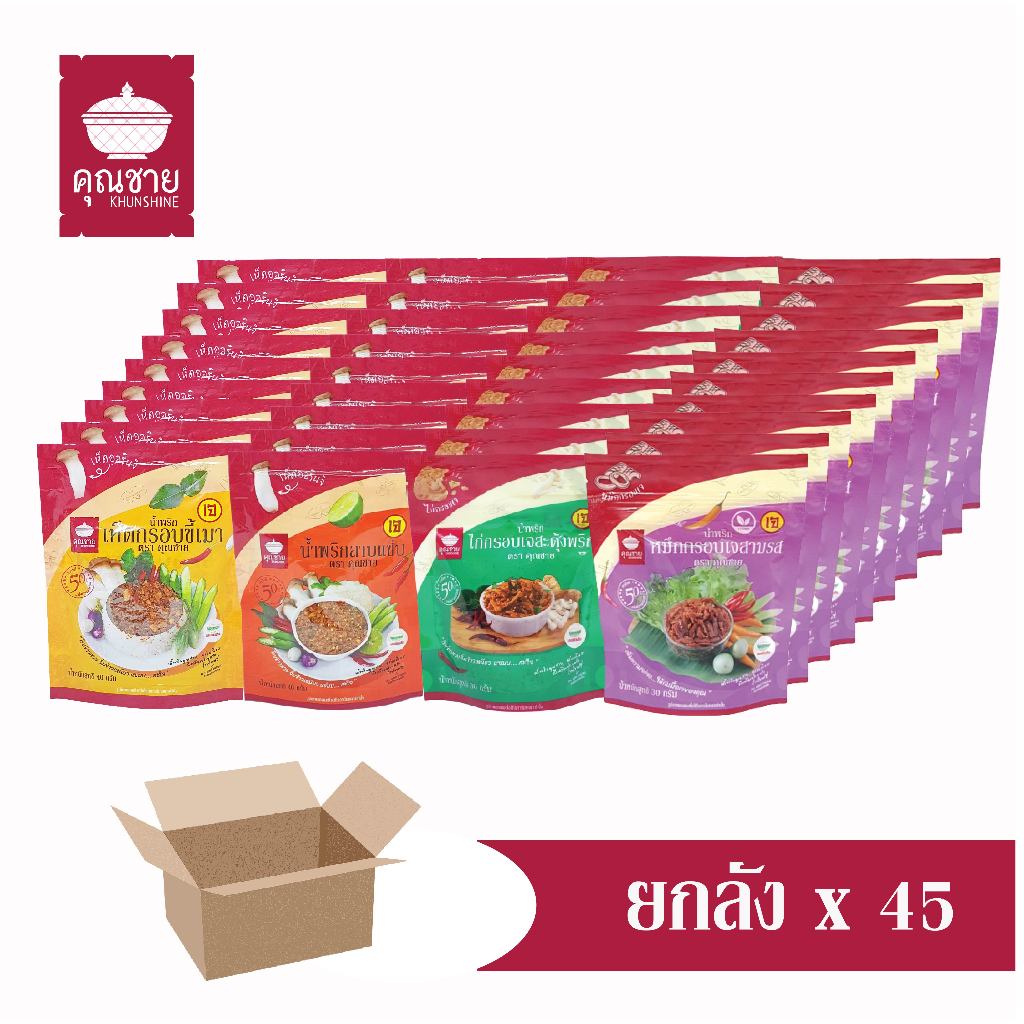 น้ำพริกเจขายยกลัง45ซอง]น้ำพริกเห็ดกรอบขี้เมาเจ น้ำพริกลาบแซ่บเจ น้ำพริกไก่กรอบเจสะดุ้งพริก ตราคุณชาย